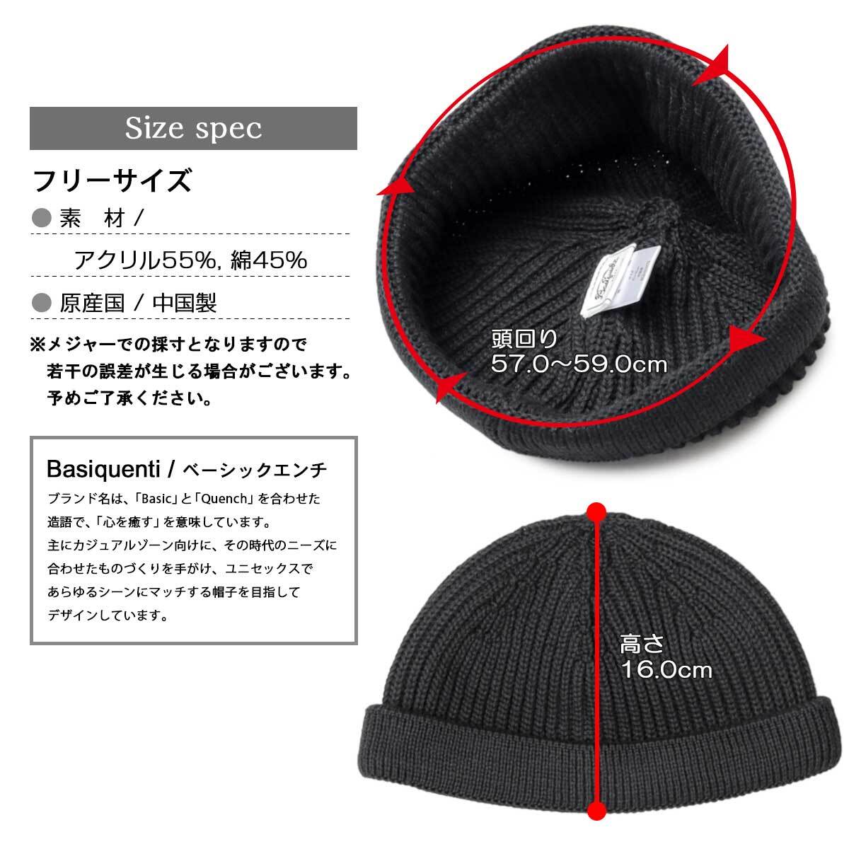 RVU-056 BASIQUENTI / ベーシックエンチ / アクリルコットン ショート ロールワッチ / ニット帽 / ワッチ