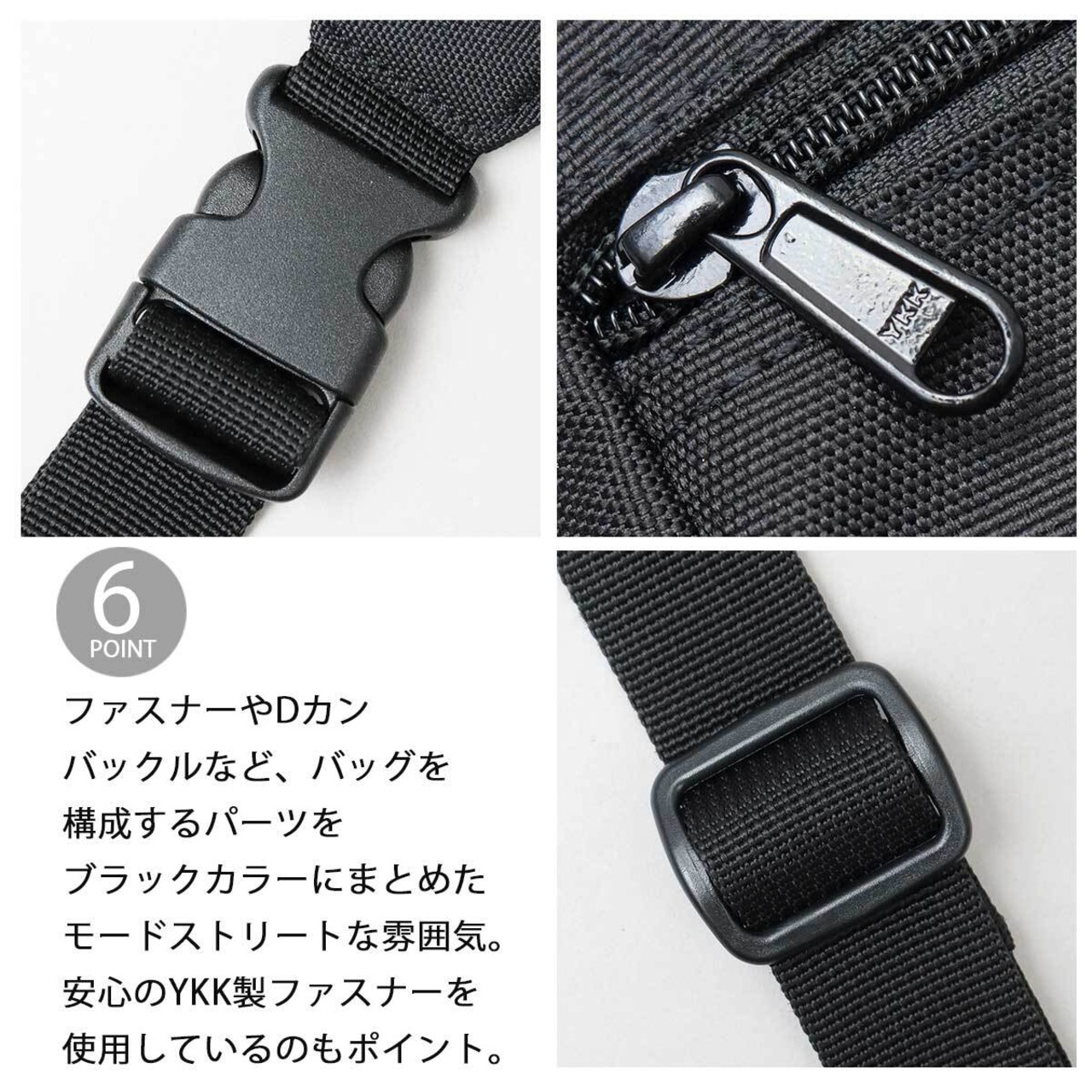 ファスナーやDカン、バックルなど、バッグを構成するパーツをブラックカラーにまとめた、モードストリートな雰囲気。安心のYKK製ファスナーを使用しているのもポイント。