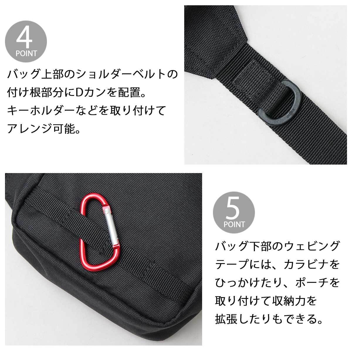 バッグ上部のショルダーベルトの付け根部分にDカンを配置。キーホルダーなどを取り付けてアレンジ可能。