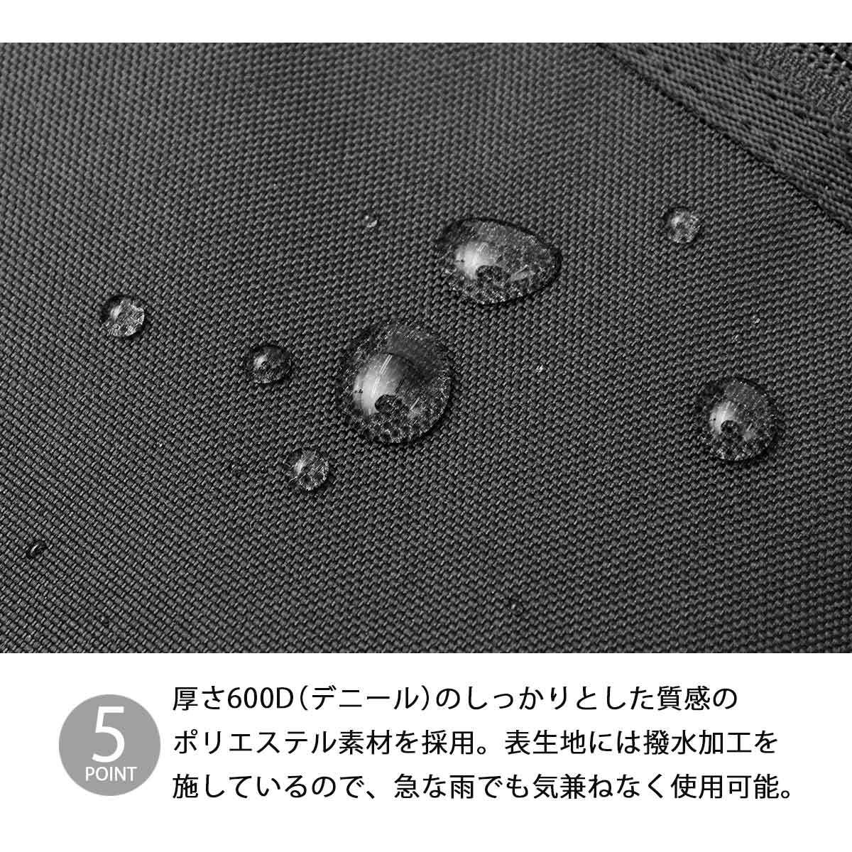 厚さ600D(デニール)のしっかりとした質感のポリエステル素材を採用。表生地には撥水加工を施しているので、急な雨でも気兼ねなく使用可能。
