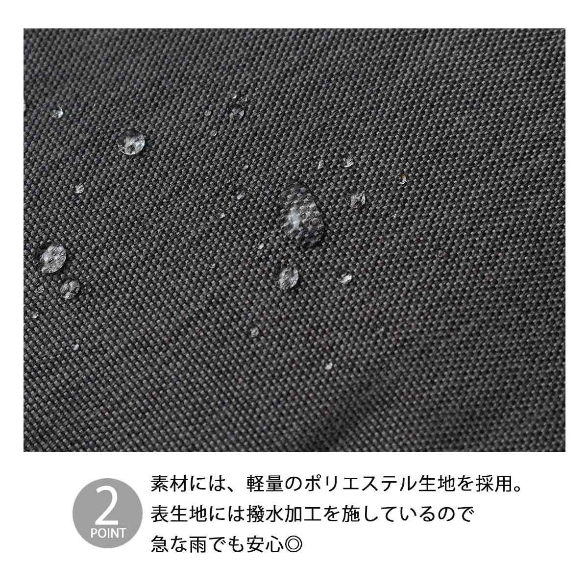 素材には、軽量のポリエステル生地を採用。表生地には撥水加工を施しているので、急な雨でも安心◎