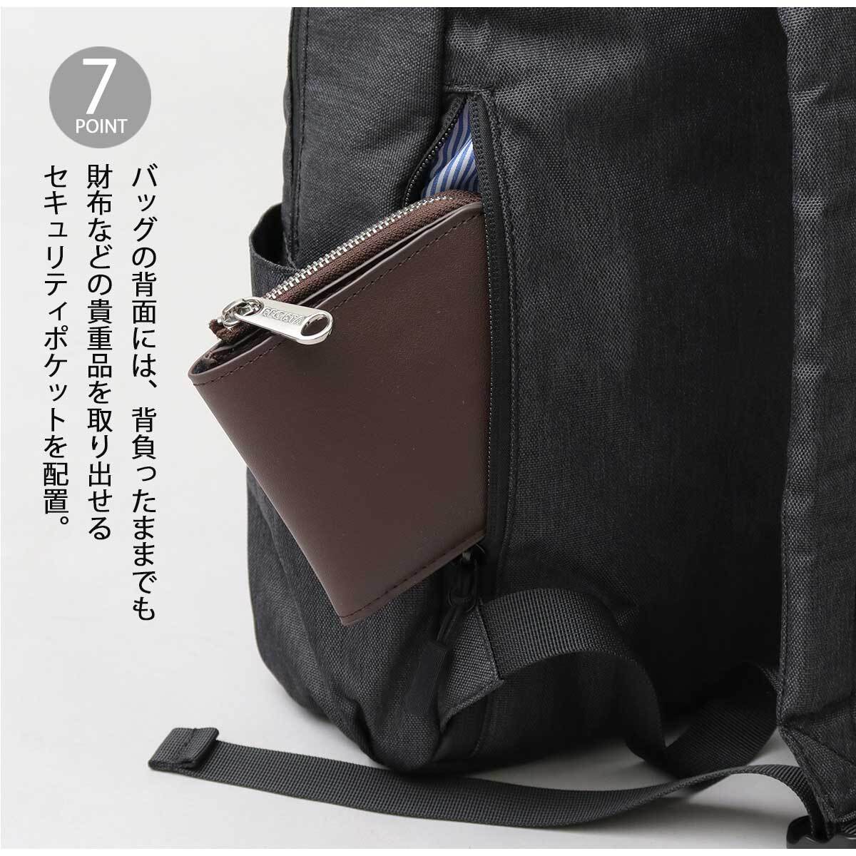 バッグの背面には、背負ったままでも財布などの貴重品を取り出せるセキュリティポケットを配置。