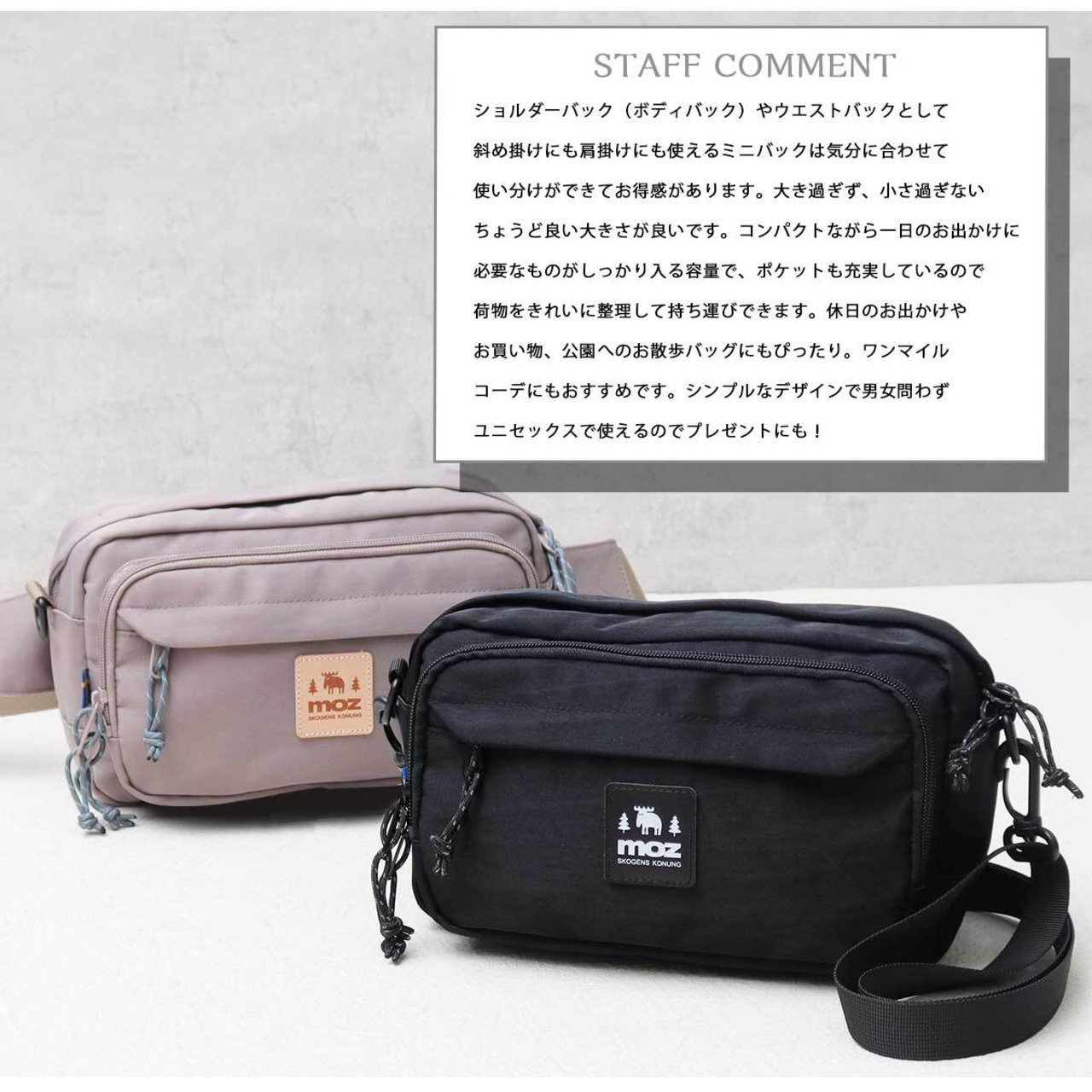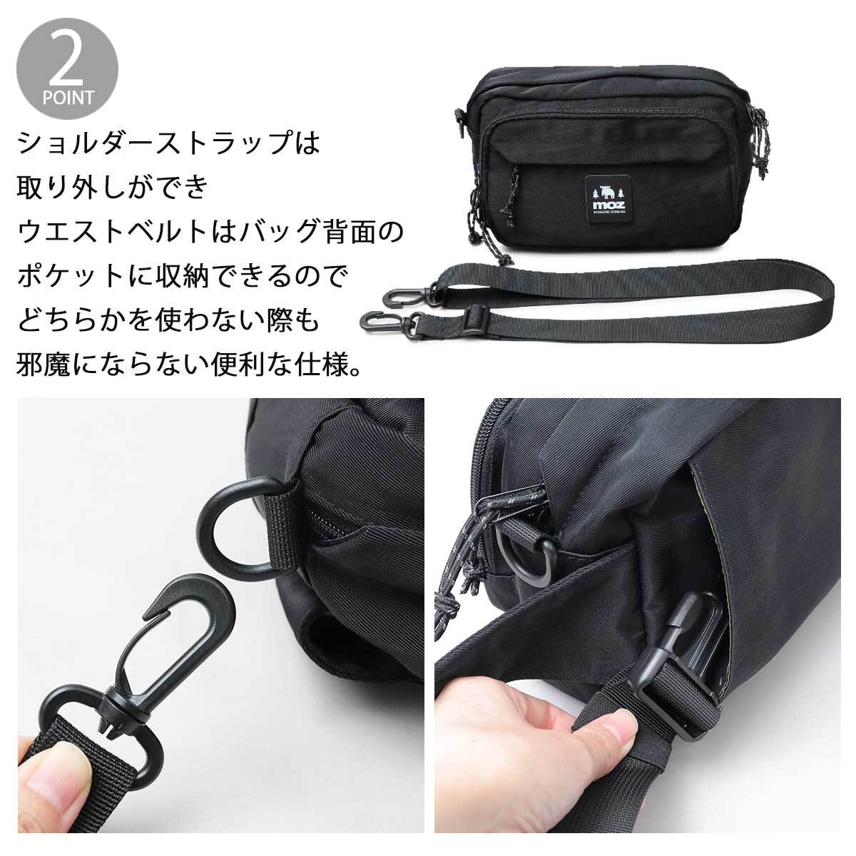 かわいいヘラジカのアイコンが印象的なスウェーデン生まれの北欧ブランド”moz(モズ)”から2wayに使えるスクエア型ウエストポーチが登場!シーンやコーデに合わせて、ショルダーバッグにもシルエットを変えられる2way仕様が魅力のアイテム。持ち歩きしやすい程良いコンパクトサイズでありながら、普段持ち歩く貴重品に加え、ペットボトルも収まるしっかり容量。小物を整理できる多数のミニポケットや、mozオリジナルの”モズポケット”も完備しているので収納力も◎軽量な素材使いや撥水機能など機能面もしっかり充実!普段使いはもちろん、休日のお出かけやお買い物、旅行先でのサブバッグやアウトドアなど様々なシーンで使える秀逸バッグです。