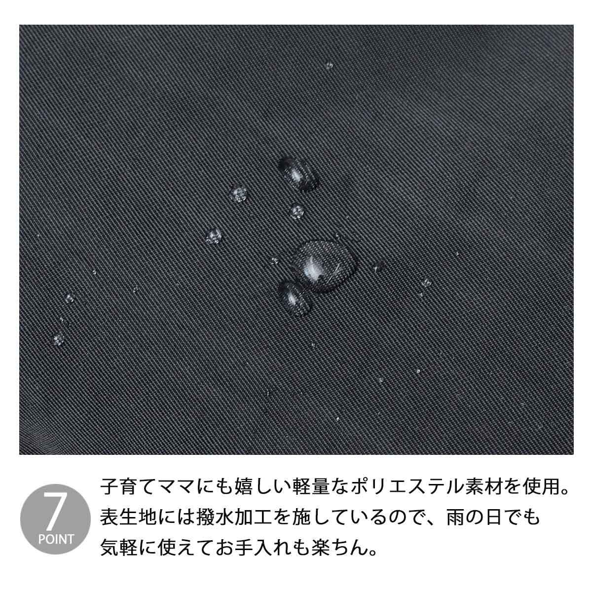 子育てママにも嬉しい軽量なポリエステル素材を使用。表生地には撥水加工を施しているので、雨の日でも気軽に使えてお手入れも楽ちん。
