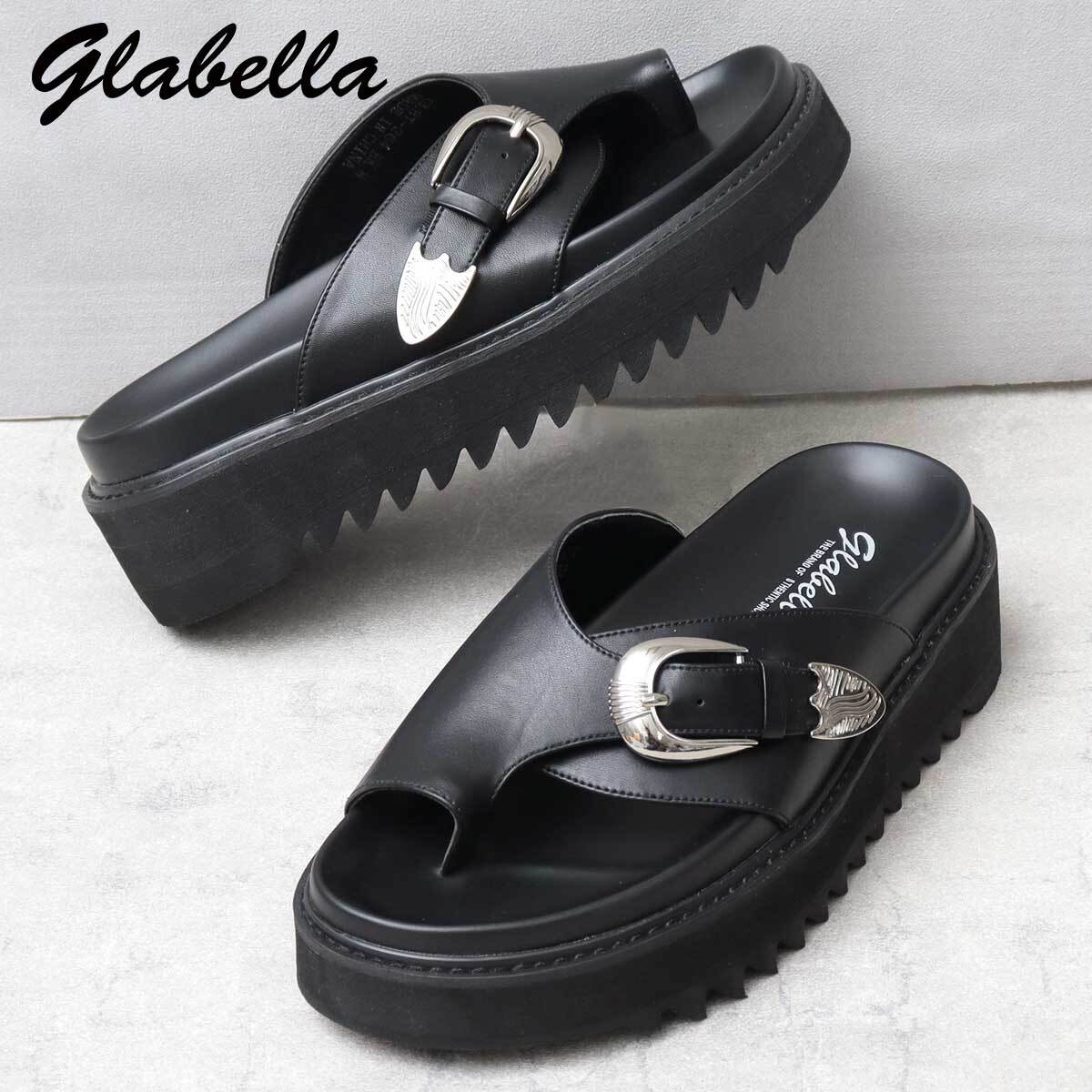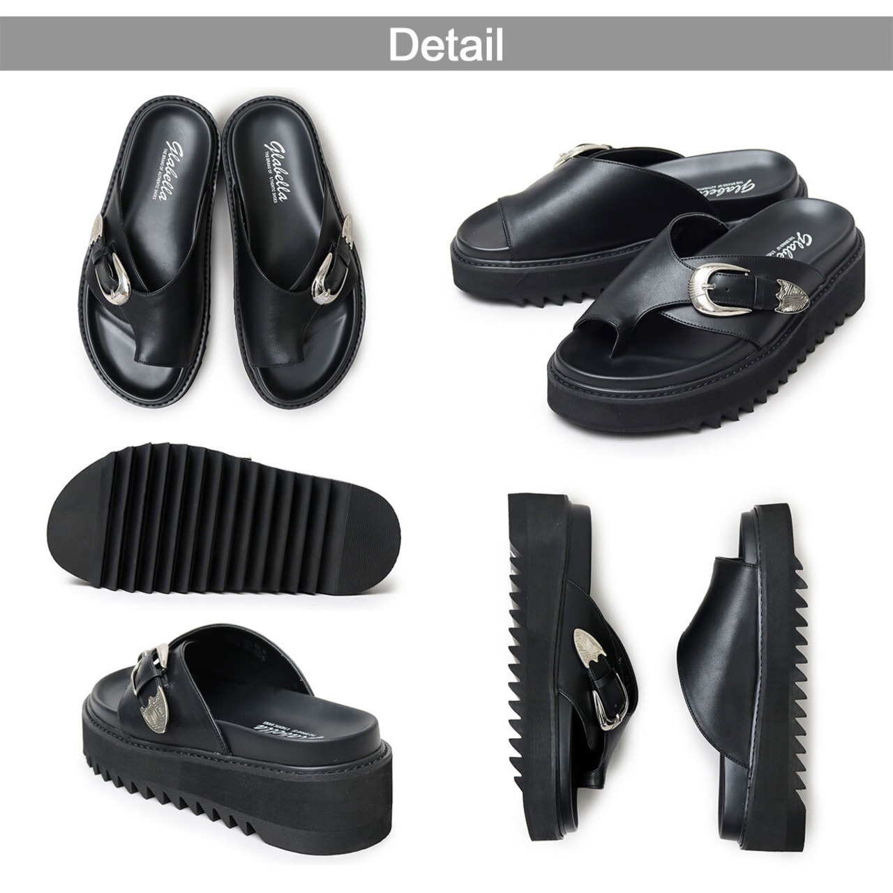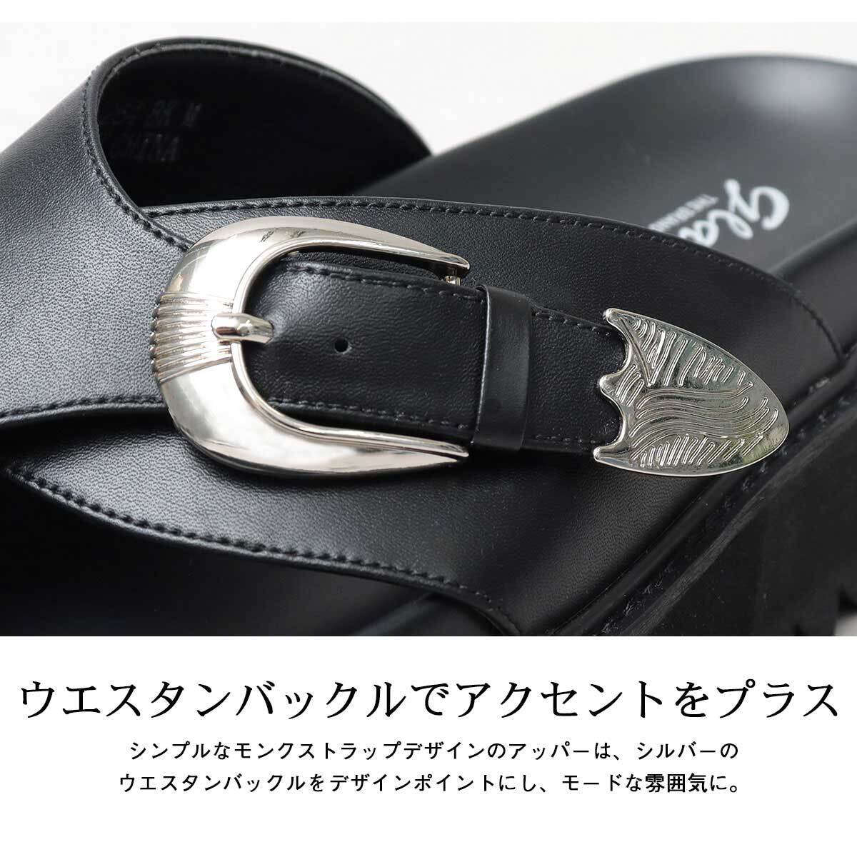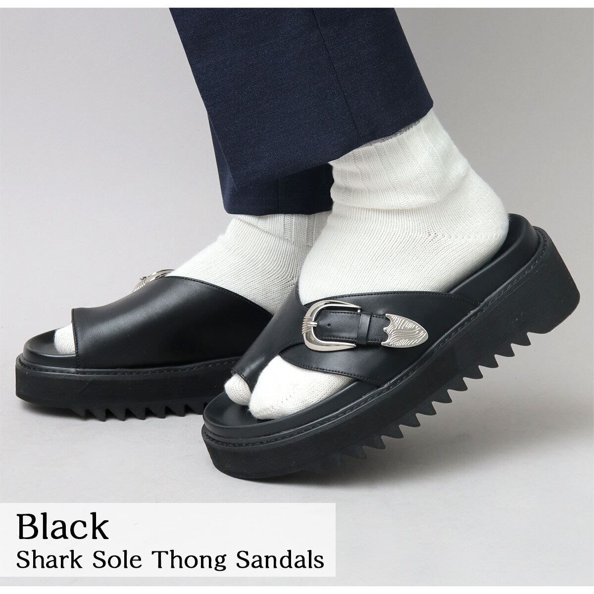GLBT-264 サンダル 厚底 シャークソール ウエスタンバックル トングサンダル / レザーサンダル