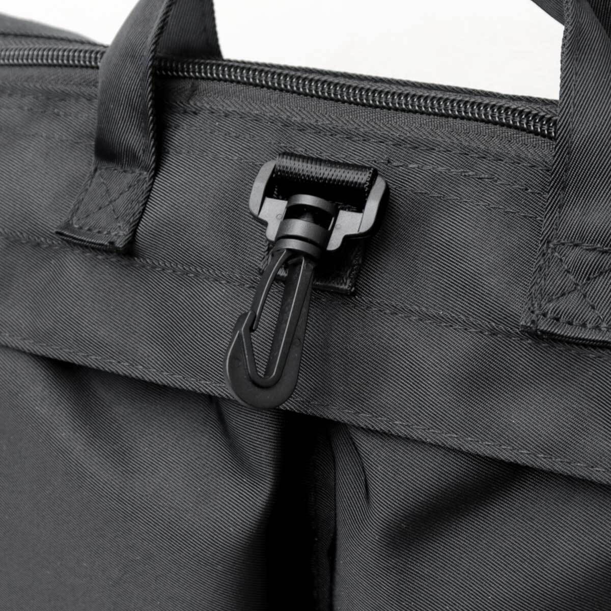 バッグのフロント部分にはナスカンを配置。カギやポーチなどを取り付けることが可能。