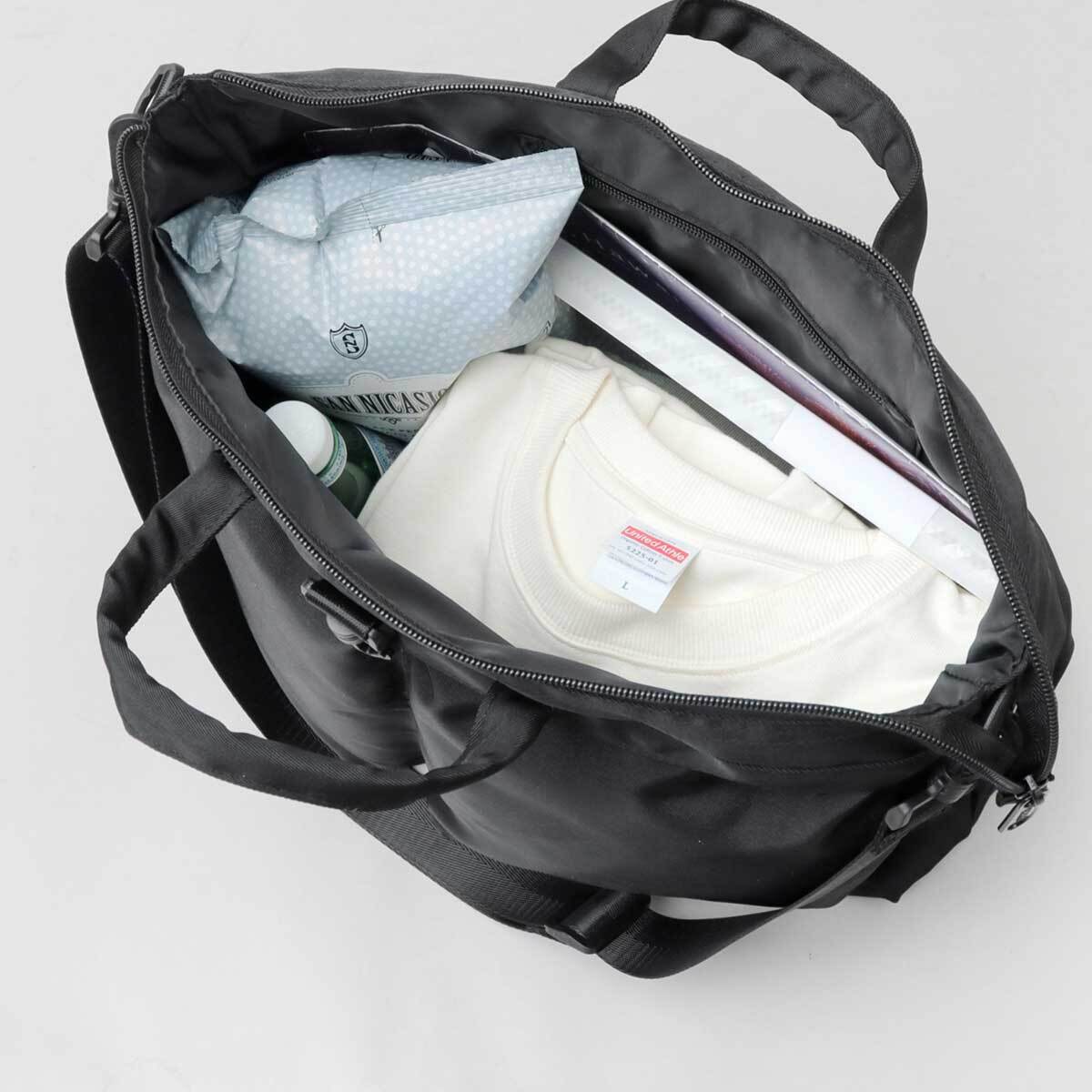 メインルームの開口部はファスナーで端から端まで大きく開き、荷物が取り出しやすく、中身が見やすい仕様。