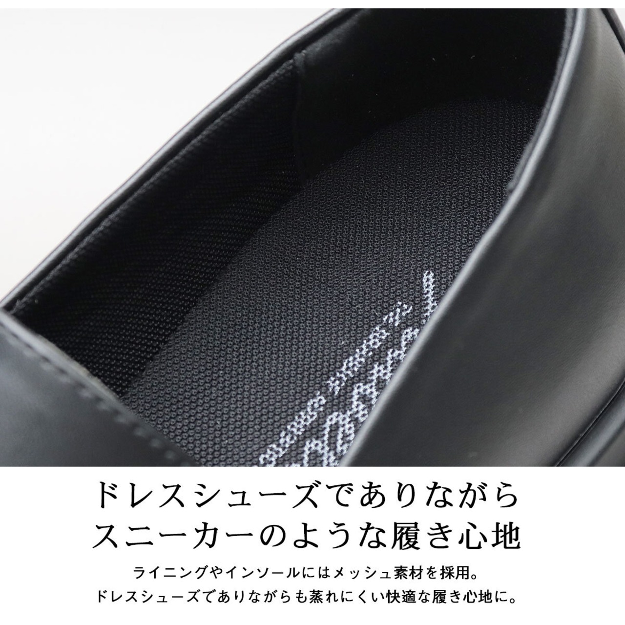 ライニングやインソールにはメッシュ素材を採用。ドレスシューズでありながらも蒸れにくい快適な履き心地に。