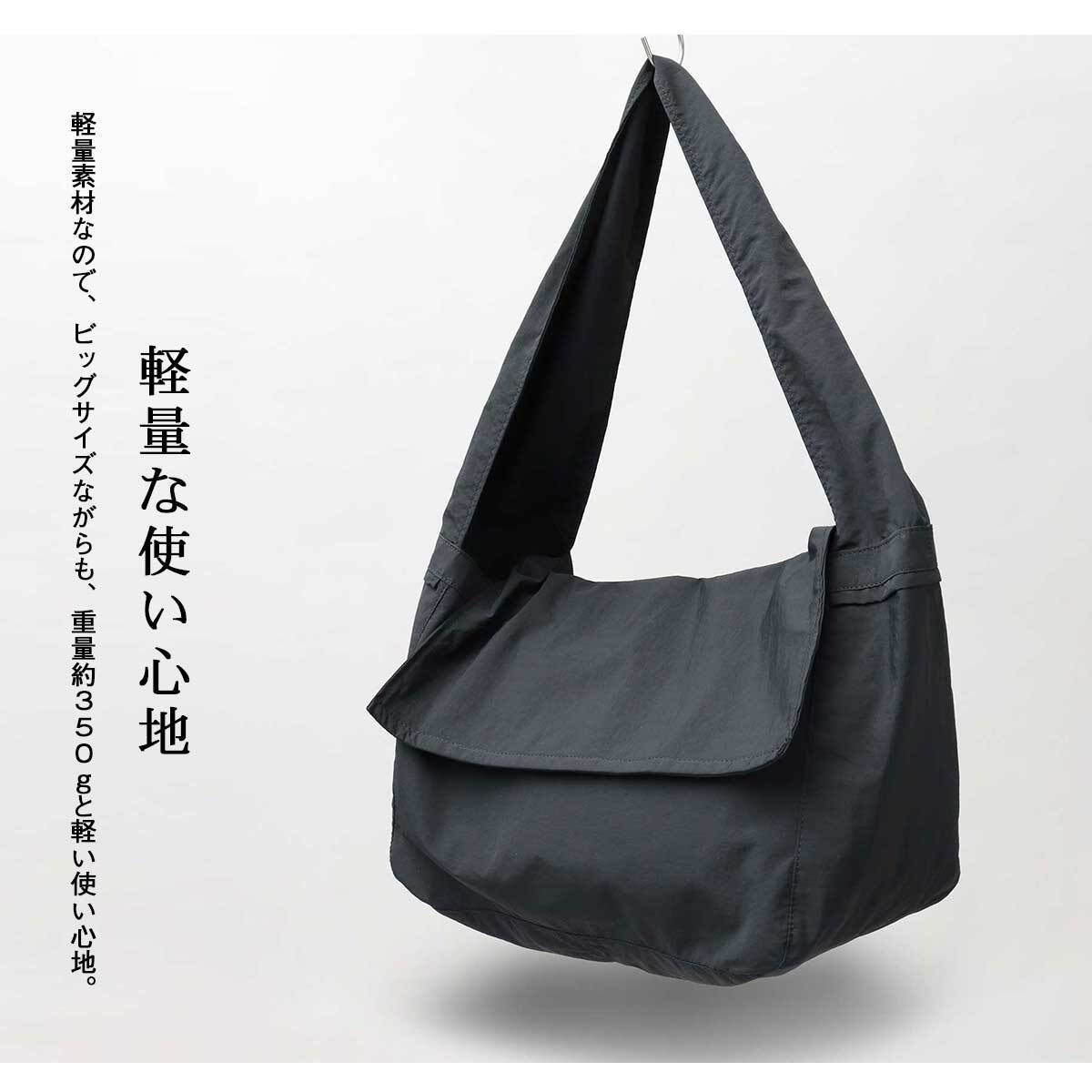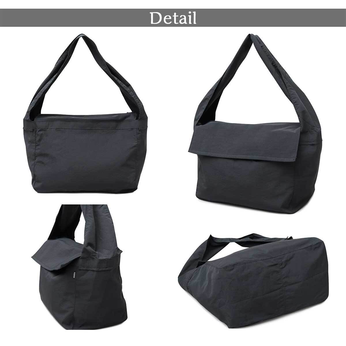 大人気流行中のニュースペーパーバッグを、撥水加工を施したナイロンタフタ素材を使用しアクティブにアレンジ。ビッグシルエットにワイドなショルダーデザインなどトレンドのディテールをしっかり押さえながらも、よりタウンユースやアウトドアシーンにも使いやすいアイテムになりました。柔らかく、クシャっとした質感のナイロン生地は、キャンバス製のバッグには無いこなれた雰囲気を演出。収納スペースはA4サイズが楽々収まり、広マチでたっぷり荷物が入る大容量!内部には実用的な収納ポケットもしっかり完備。普段使いはもちろん、通勤・通学や旅行にも活躍してくれるフラップショルダーバッグです。
