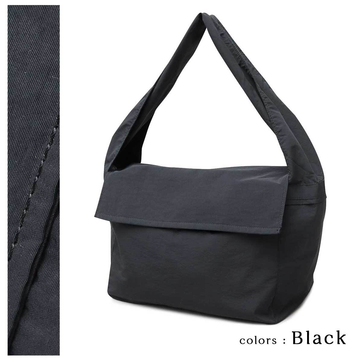 トレンドのディテールは抑えながらも、ナイロンタフタ生地を使用し、アクティブにアレンジしたニュースペーパーバッグ。柔らかくクシャっとしたナイロン生地は、キャンバス製のバッグには無いこなれ感を演出。