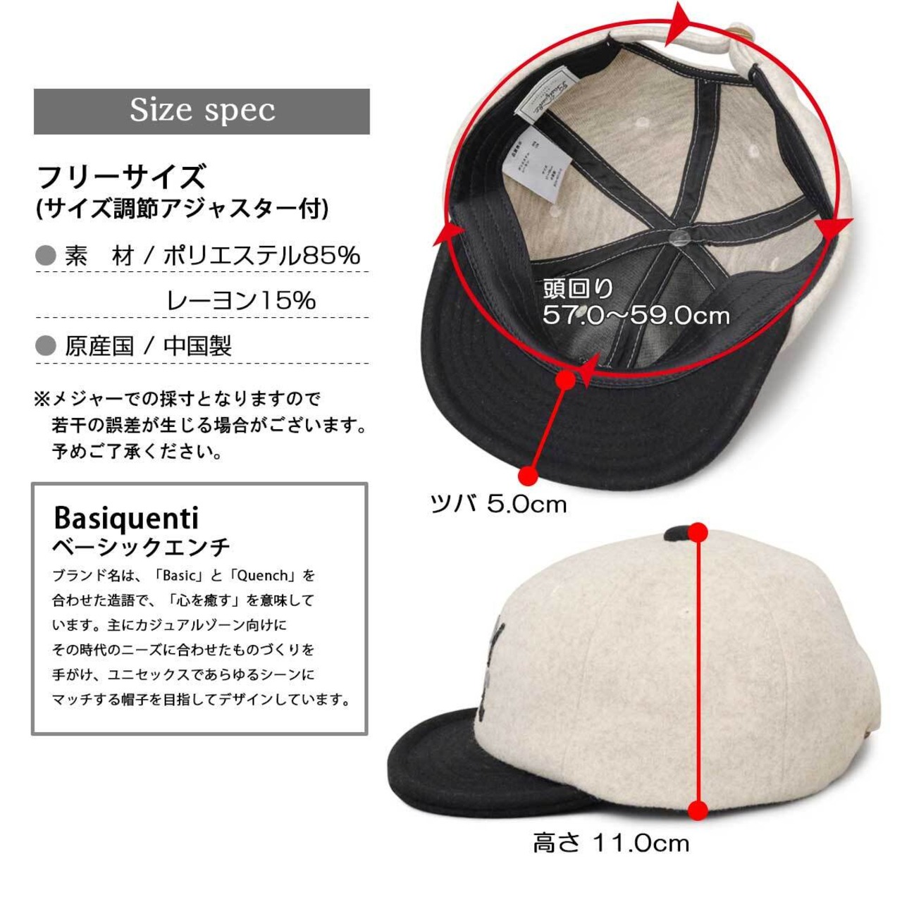 ブランド名は、「Basic」と「Quench」を合わせた造語で、「心を癒す」を意味しています。主にカジュアルゾーン向けに、その時代のニーズに合わせたものづくりを手がけ、ユニセックスであらゆるシーンにマッチする帽子を目指してデザインしています。