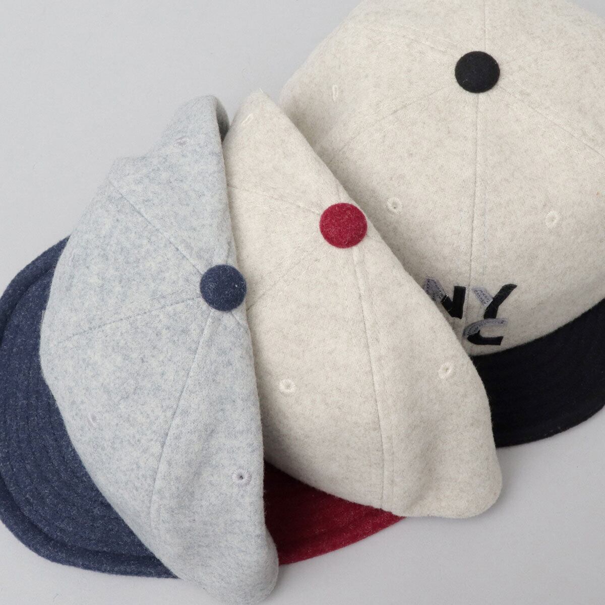 ベースボールキャップのツバを短くしたデザインが特徴のアンパイアキャップ。やや深めの被りにフラットで短いツバを合わせた特徴的なシルエットがポイント。ツバは柔らかく、ソフトワイヤー入りなので、ツバを反らせたり、曲げたりと表情を変えて楽しめる。また、短いツバは邪魔にならないので後ろ被りにもおすすめ。暖かみのあるメルトン素材を使用した、秋冬シーズンにぴったりのアイテムです。ボディと、ツバ・天ポチに異なる配色を施したバイカラーデザインと、愛嬌のある“NYC”ワッペンが程よいゆるさを演出◎柔らかな素材なので、小さく畳んで持ち運びが可能です。普段使いはもちろん、アウトドア・タウンユースなど、幅広いシーンに活躍するアイテム。