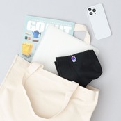 サイドに施された“Champion”の刺繍ワッペンがさり気ないワンポイント。