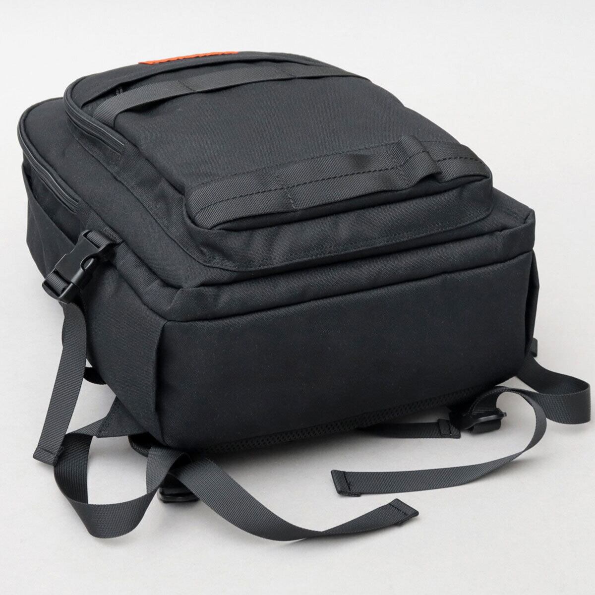 フロントの上下にモールテープを配置した、ワークブランドらしいデザインが魅力のバックパック。正面に配置したブランドタグがワンポイント。