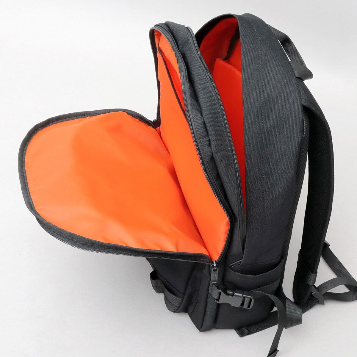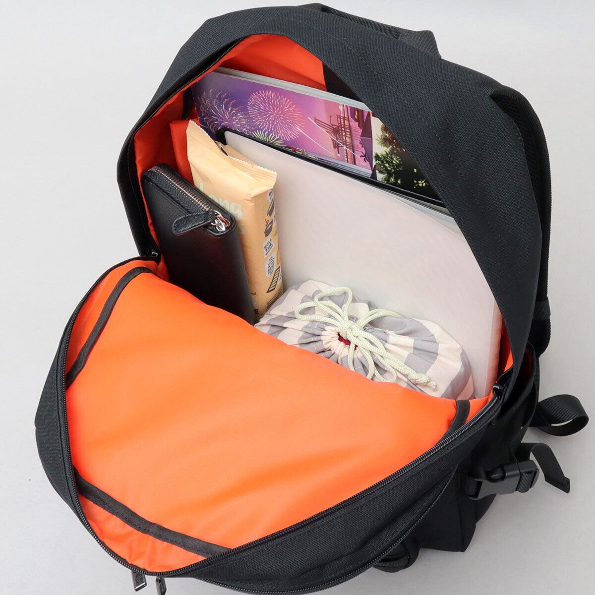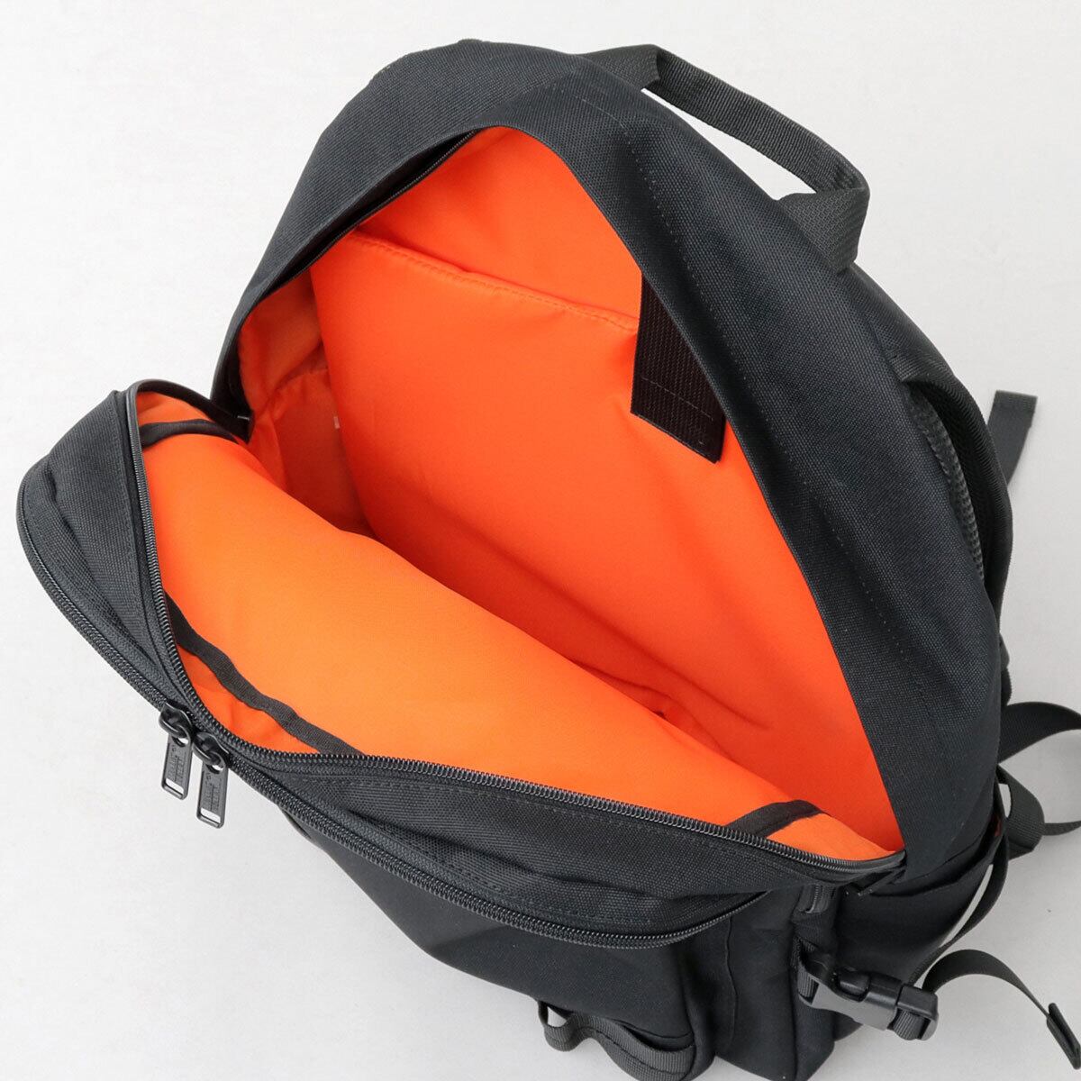 ブランドカラーでもあるオレンジの内装生地を使用し、中が明るく見やすい仕様に。