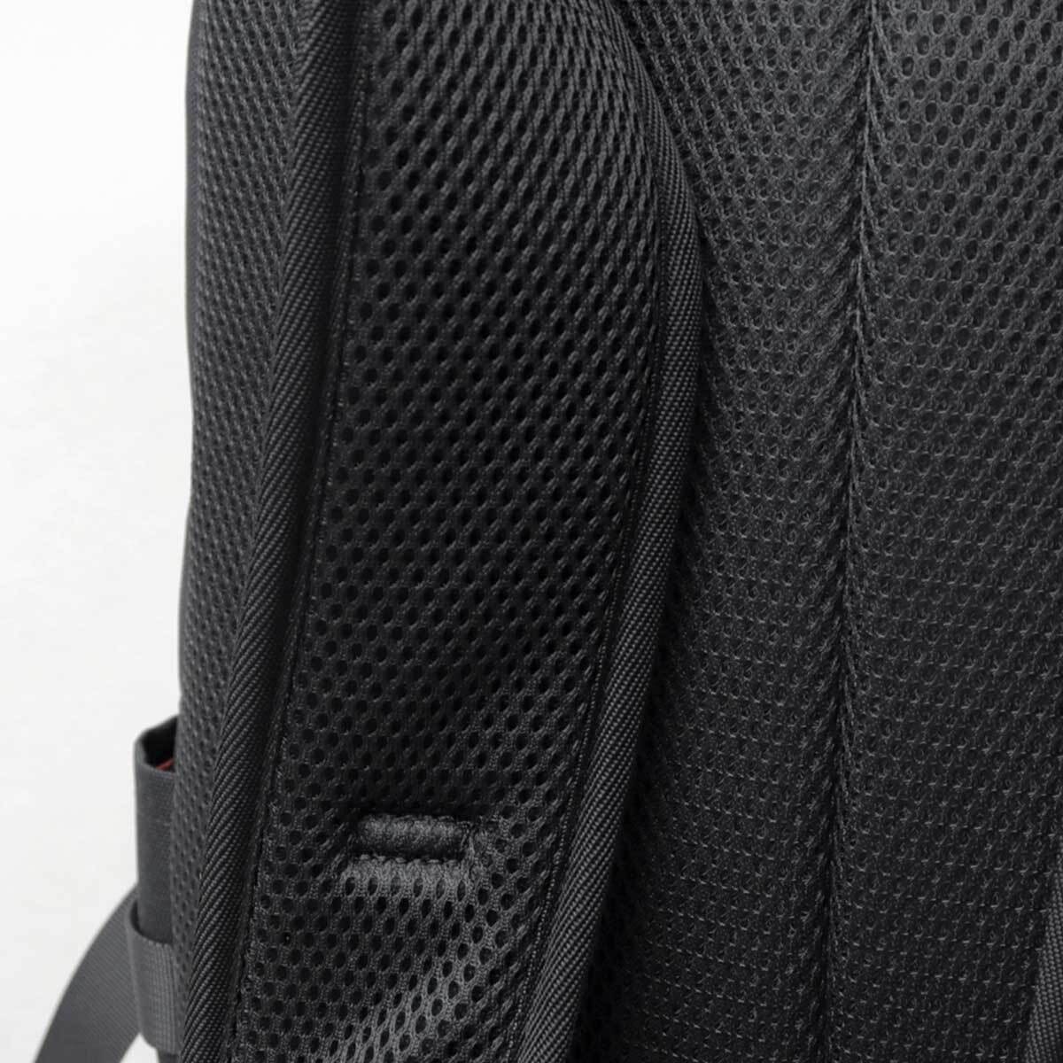 バッグの背面とショルダーベルトの裏側にはメッシュ素材を使用。通気性が良く、不快な蒸れを軽減。