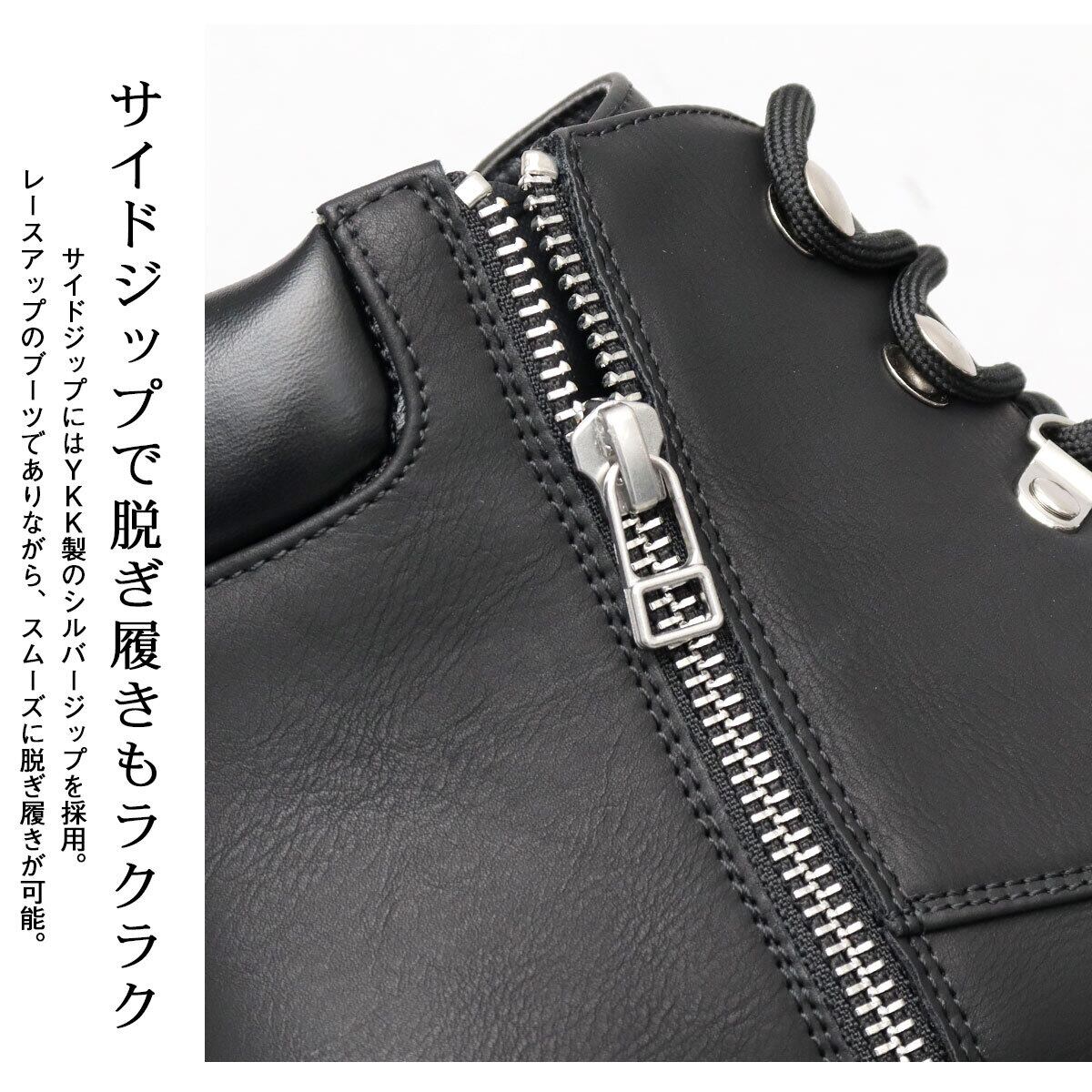 サイドジップにはYKK製のシルバージップを採用。レースアップのブーツでありながら、スムーズに脱ぎ履きが可能。