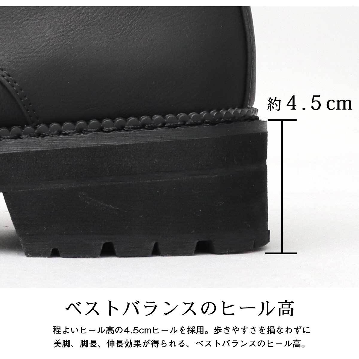 歩きやすさを損なわずに美脚、脚長、伸長効果が得られる、ベストバランスな4.5cmのヒール高を採用。厚底タンクソールは軽量なEVA素材で厚みを増しているので、重過ぎず軽い履き心地。