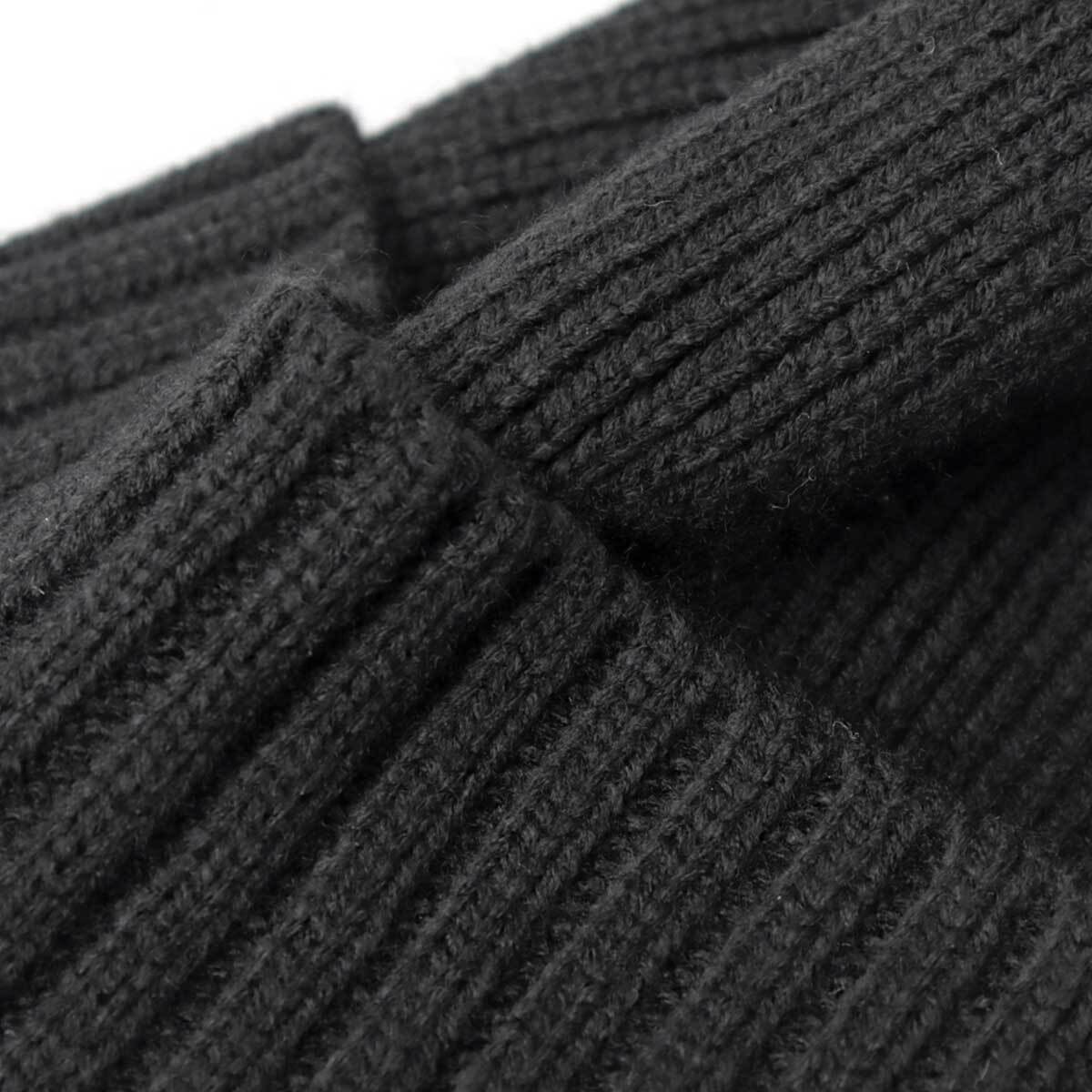 ボディと耳当てはミドルゲージの天竺編みニット、ワイドなロール部分はリブ編みニットで切り替え、上品さとカジュアルさを併せ持った表情に。