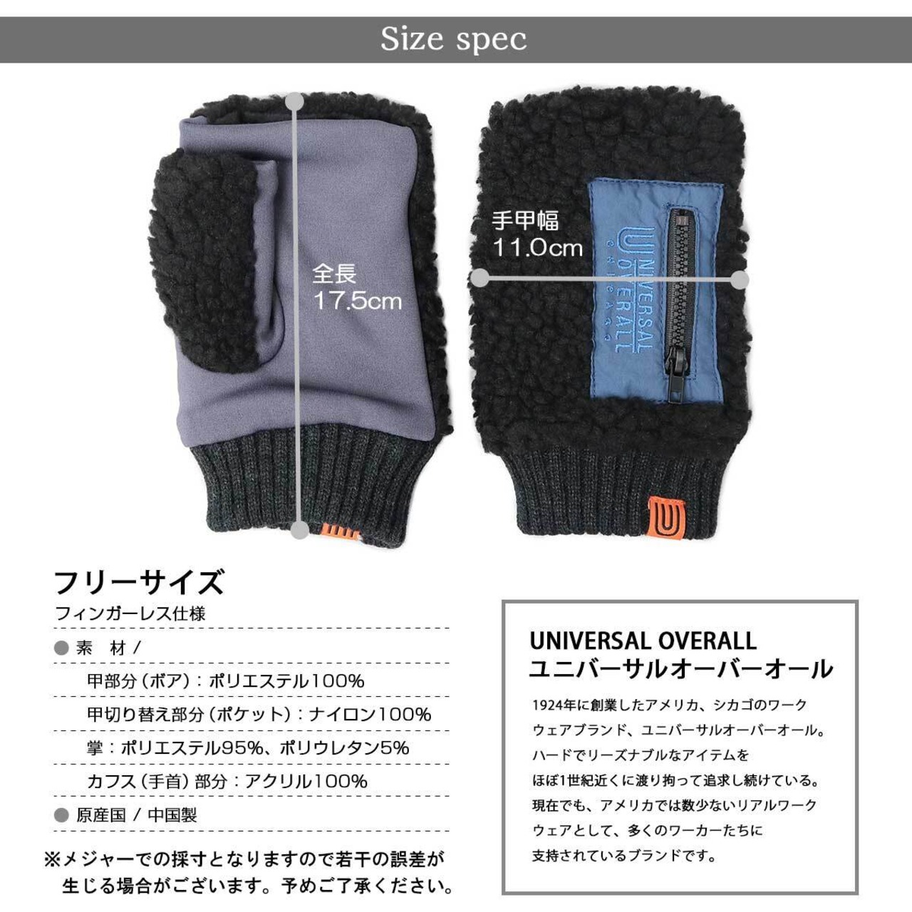 老舗ワークウェアブランド“ユニバーサルオーバーオール”のフィンガーレスグローブ。甲側と親指の表地に、もこもこのシープボアをふんだんに使用した、秋冬らしい温かみのあるデザイン。手のひら側はストレッチ入りで伸縮性があり、程良いフィット感で操作性も抜群。甲部分には、ロゴ刺?が施されたファスナー仕様のミニポケット付き。寒さ対策にはもちろん、取り入れるだけでシーズンムード高まる冬のマストアイテム。通勤・通学など普段使いはもちろん、アウトドアなどのアクティブなシーンまで幅広く活躍してくれます。