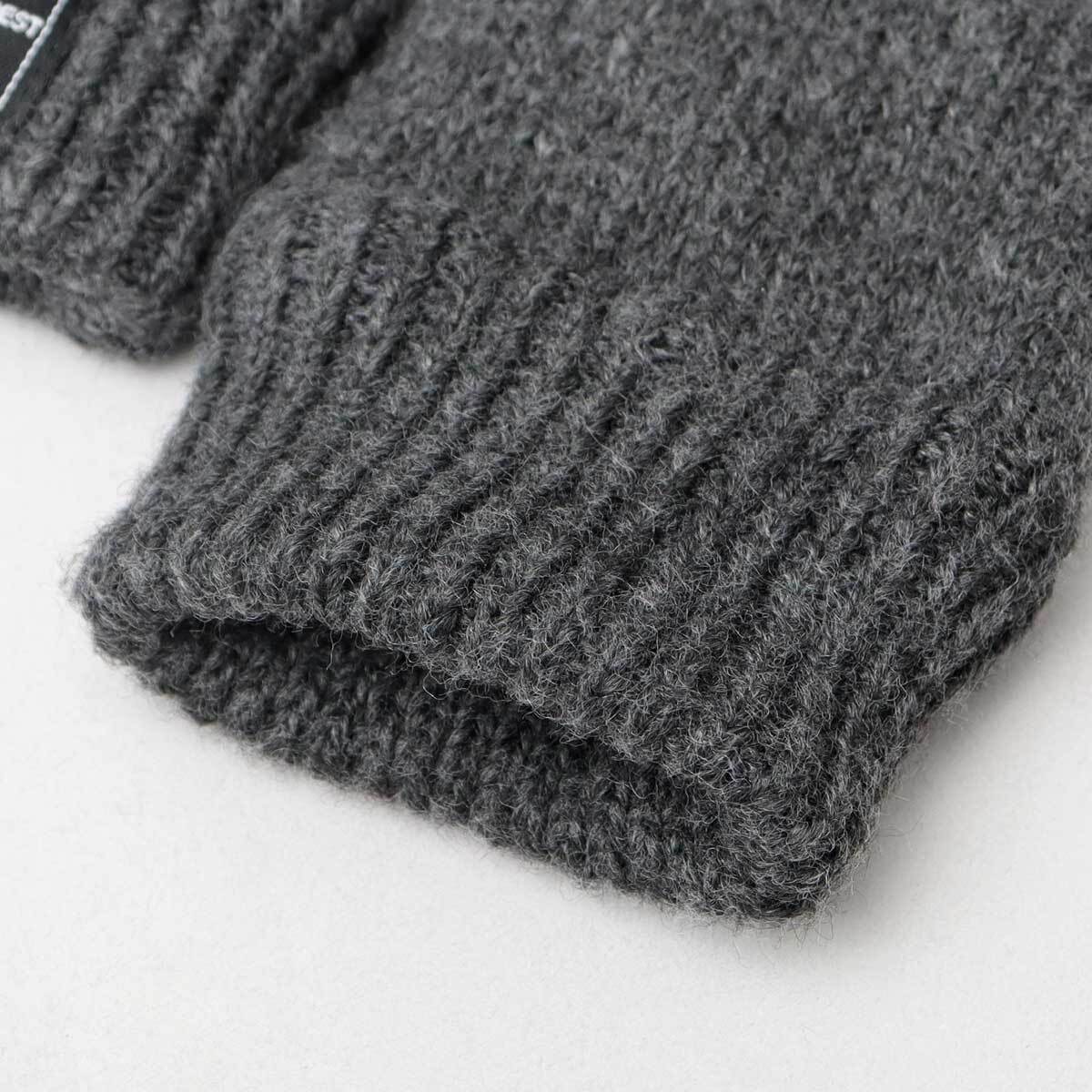 寒い冬の風から指先をしっかり守れる、5本指仕様のニットグローブ。リブ部分に配置されたハリネズミのブランドタグが、目を惹くワンポイントデザイン。