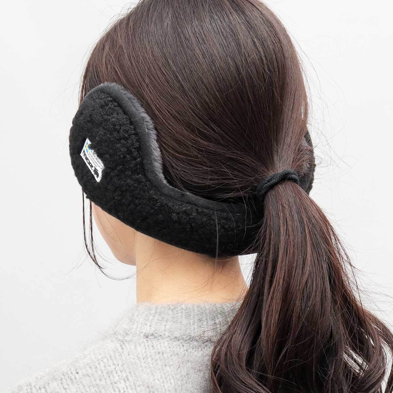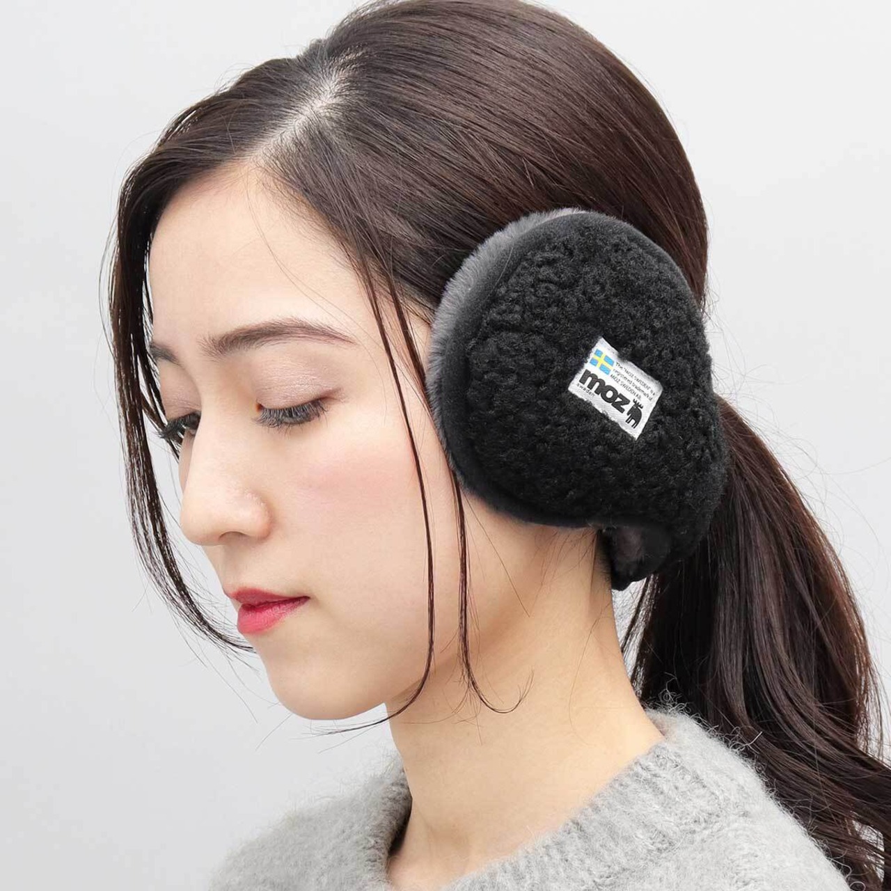 HYK-023 moz モズ イヤーマフラー 耳あて レディース イヤーマフ イヤマフ バックアームタイプ シープボア素材 ファー素材 シンプル ロゴ ワンポイント 無地 コンパクト 折りたたみ