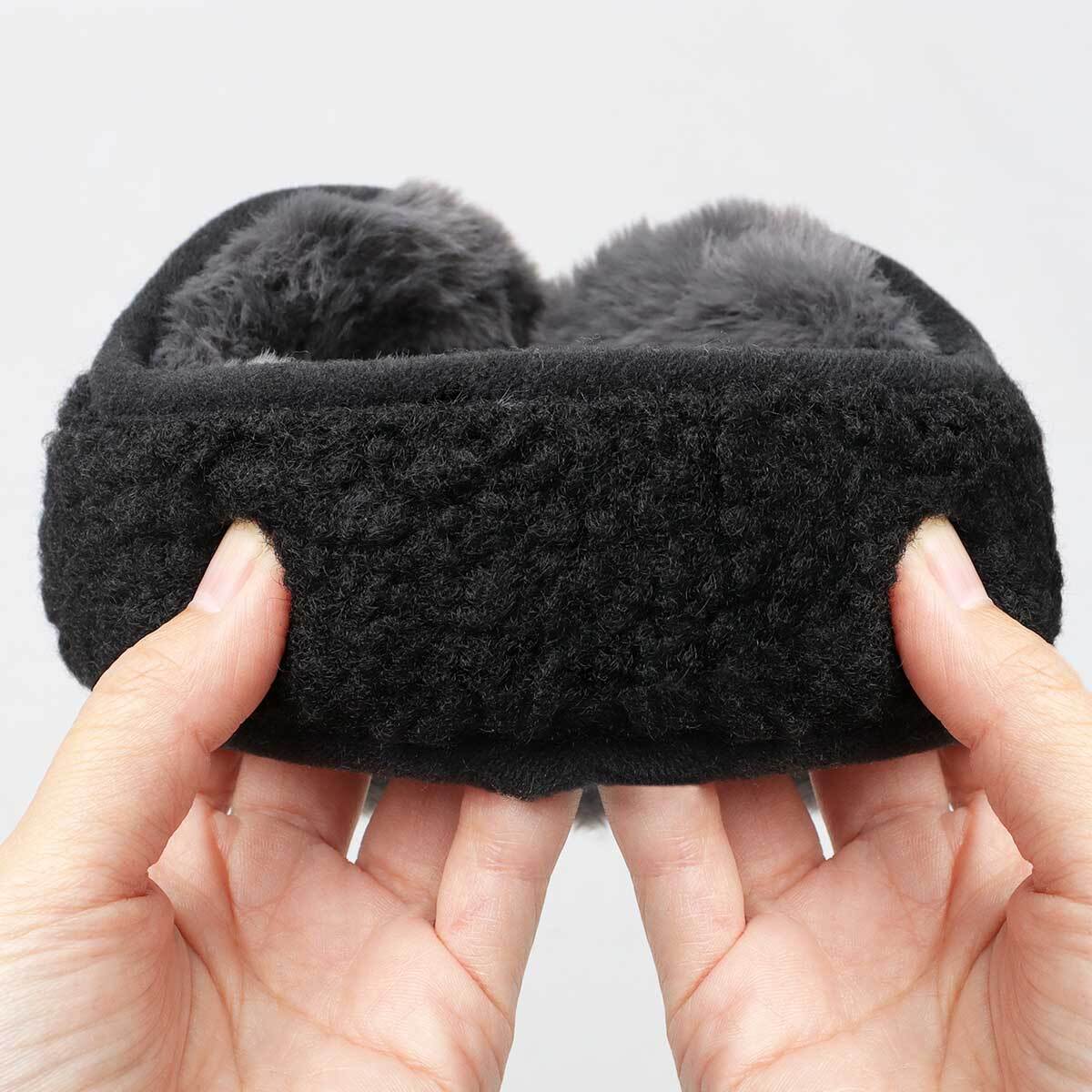 耳の当たる内側には、ふんわり肌触りの良いファー素材を使用。保温性に優れ、冷たい風や寒さから耳元をしっかり防寒。