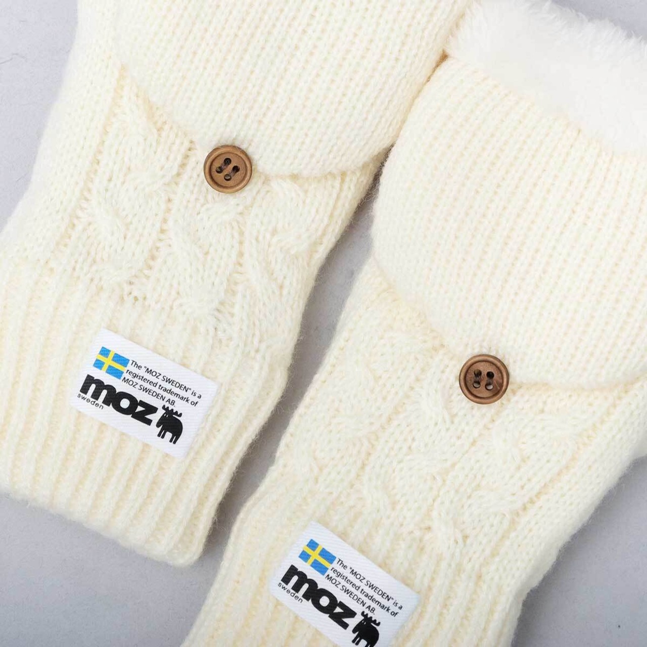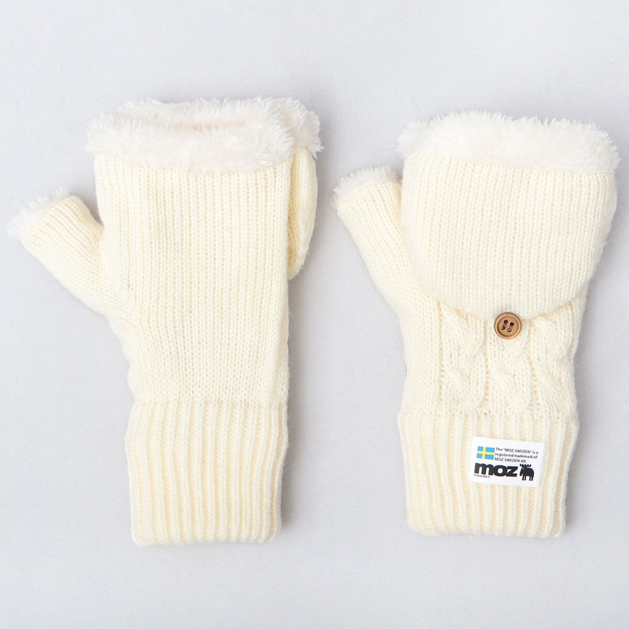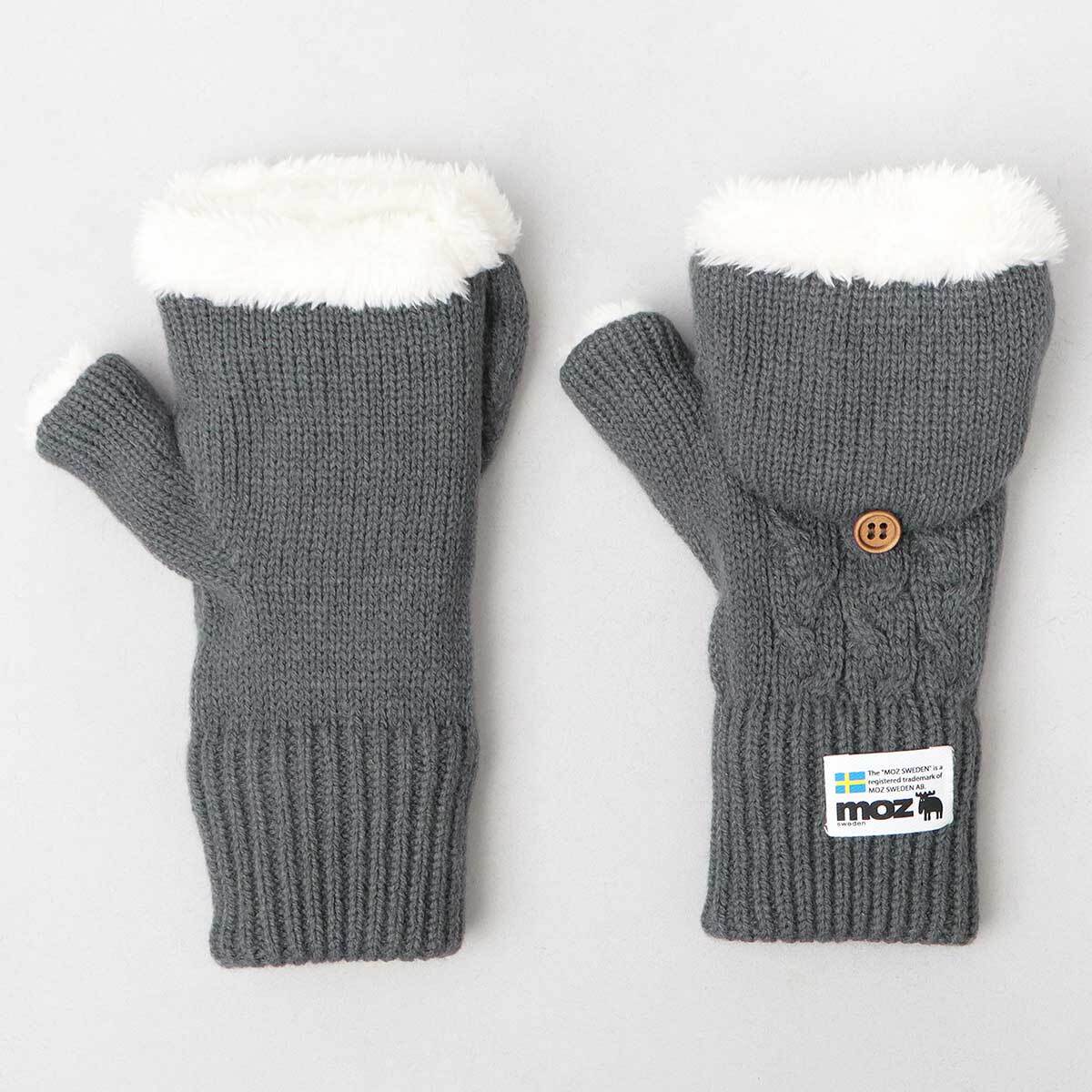 スウェーデン生まれの北欧ブランド”moz(モズ)”のミトングローブ。指先をすっぽり覆うことも、少し出して使うことも可能な2WAY仕様。甲側をケーブル編みニット生地で仕上げた、秋冬の季節感漂うデザイン。裏地はふんわり滑らかなファーフリース素材を使用し、優しい肌触りで暖かな着け心地に。カフス部分(手首)は風を通しにくいリブ仕様で保温性も抜群。5本指すべての指を出せる仕様になっており、手袋を脱がなくてもスマホや細かい作業が可能。ミトン部分をボタンで留めておけるので邪魔にならないのも嬉しいポイント。外出時の寒さ対策だけでなく、コーデに取り入れるだけでシーズンムード高まるオシャレアイテム。