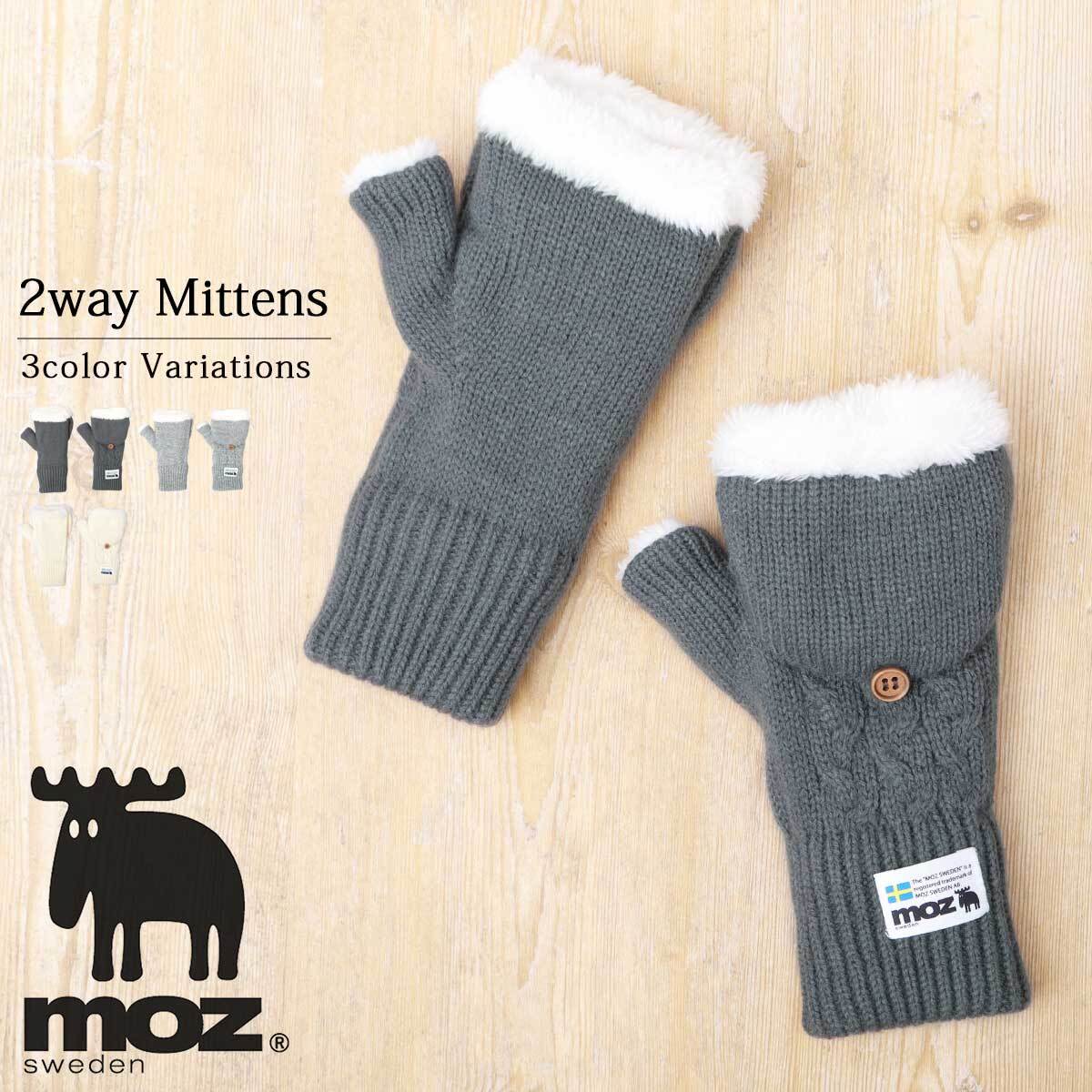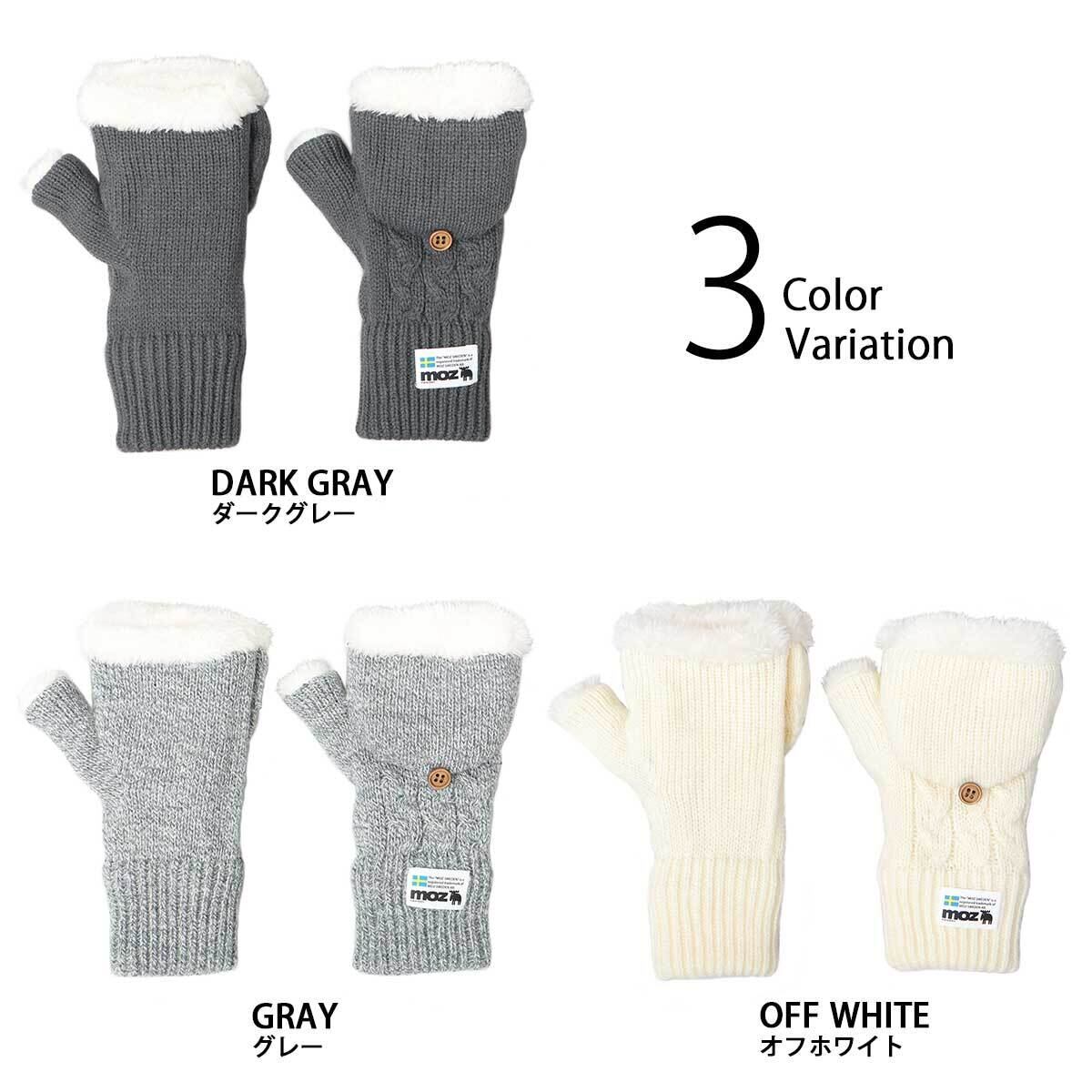 HYK-024 moz モズ ケーブルニット フード グローブ ミトングローブ ミトン 手袋 ケーブル編み 裏ボア 2WAY 防寒 冬 暖かい レディース 北欧 フィンガーレス 可愛い