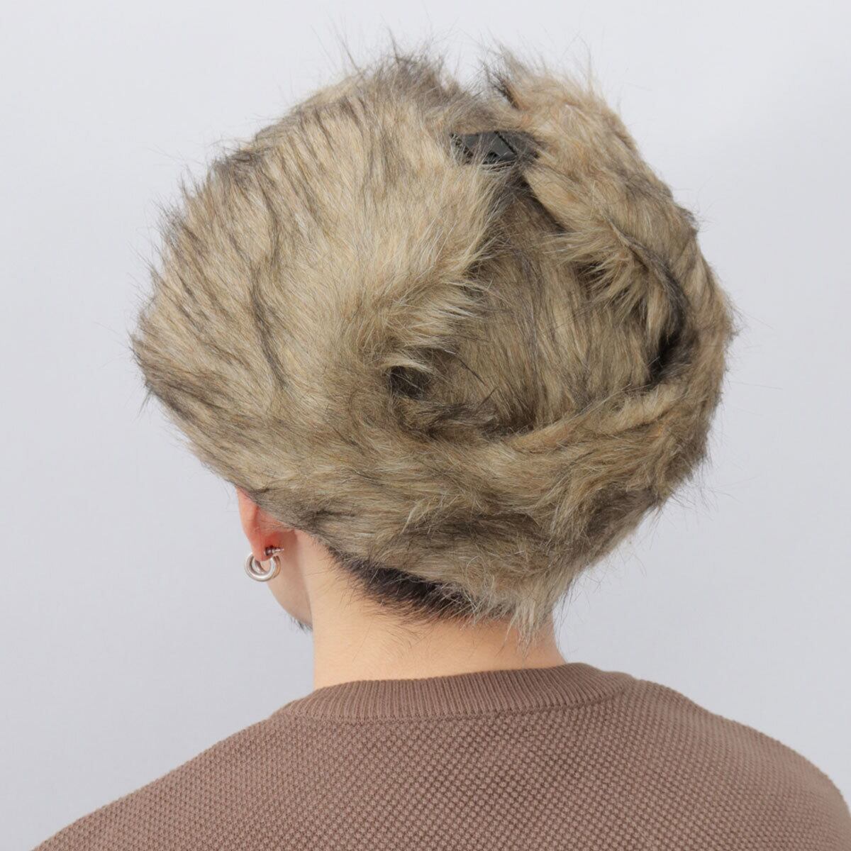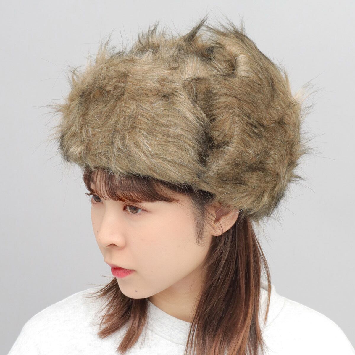 ボディ・イヤーフラップ部分全体にミックスカラーが特徴のフェイクファーをたっぷり使用。毛足の長いフェイクファーがコーディネートの主役級の存在感に◎