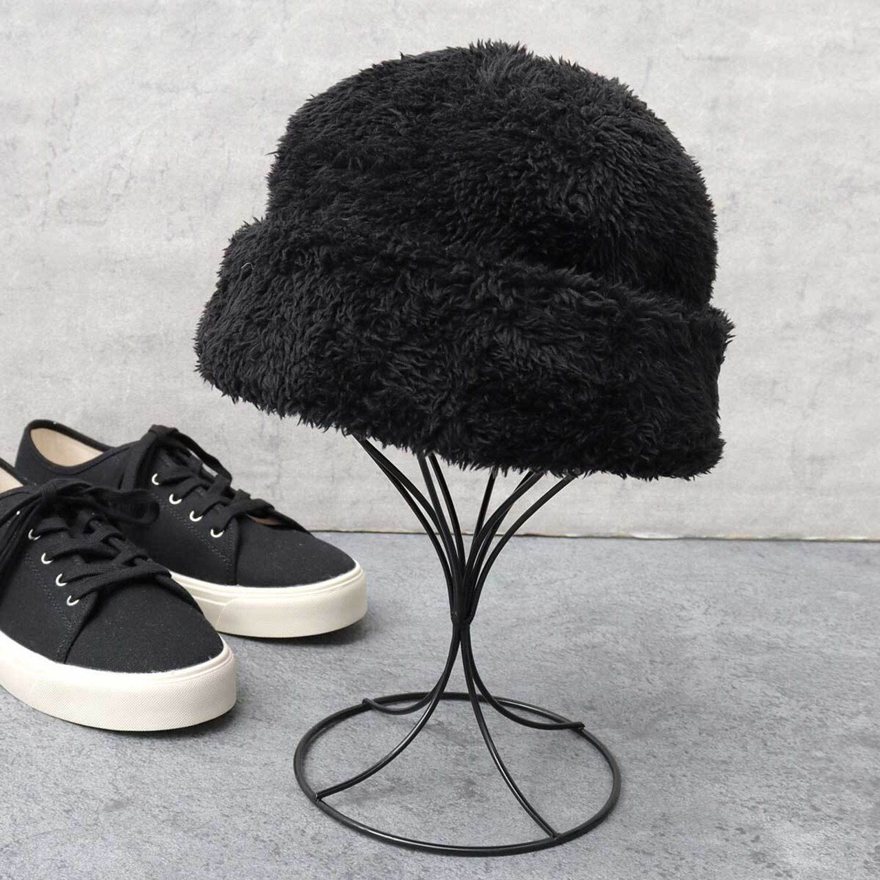ファーリーな素材感を活かす深めのシルエットに設計。深く被れるように高さを出しつつも、折り返し幅を幅広に設計し、全体の丸いシルエットを維持した拘りシルエット。