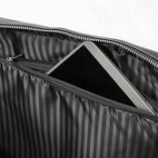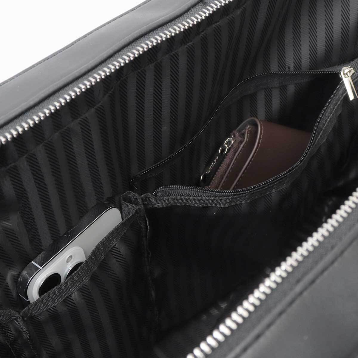 バッグ内側のライニング(裏地)には、光沢のあるストライプ柄の生地を採用。やり過ぎ感のない落ち着いたデザインで、高級感をプラス。