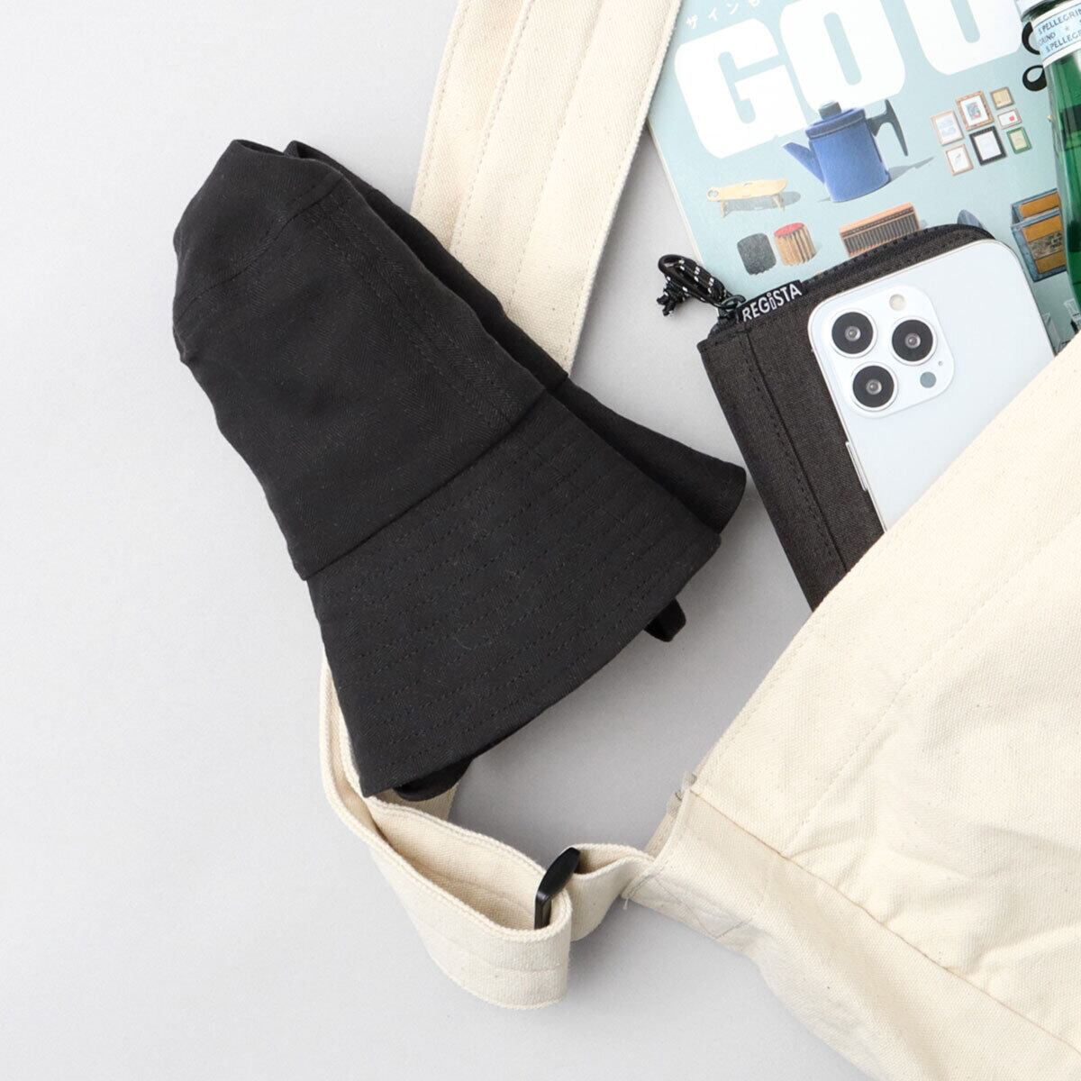 ハット全体が柔らかい作りなので、小さく折り畳んで収納可能。持ち運びに便利。