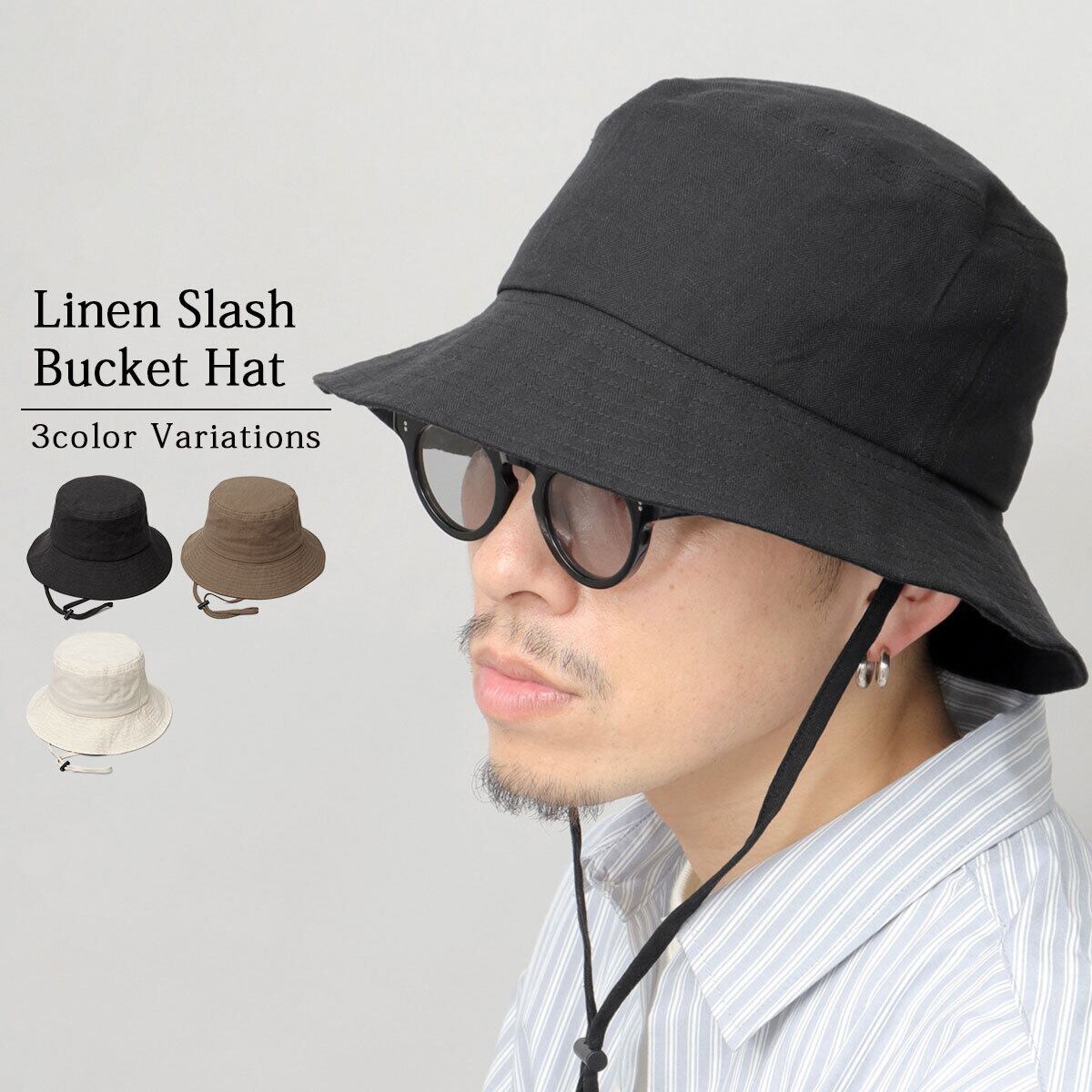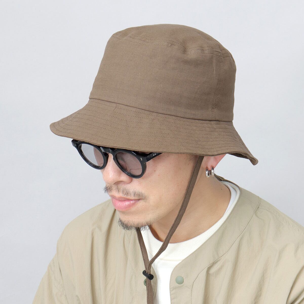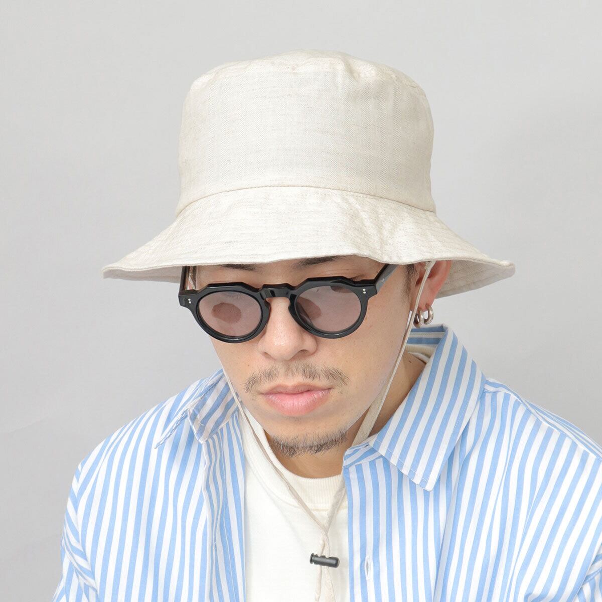 サラッとした質感のコットンリネン素材を使用した、リネンバケットハット。程良いカジュアル感でタウンユースにも使いやすいアイテムです。日除けに適した360度の長めのツバ、フィット感を調節できるあご紐など、アウトドアシーンにマストな機能性をしっかり完備。ハット全体が柔らかい作りなので、帽子を折り畳んで収納できるのも嬉しいポイント。オシャレに日差しから守ってくれるアイテムは、普段使いはもちろん、アウトドアやフェス、旅行、バカンスなど、幅広いシーンに活躍してくれます。