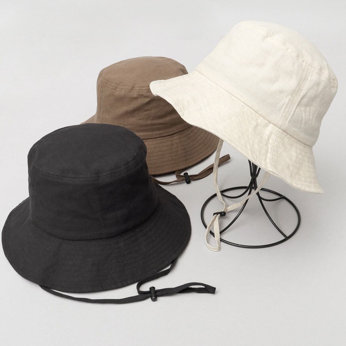 サラッとした質感のコットンリネン素材を使用した、リネンバケットハット。程良いカジュアル感でタウンユースにも使いやすいアイテム。しっかり被れる深めの設計で、安心感のある被り心地。