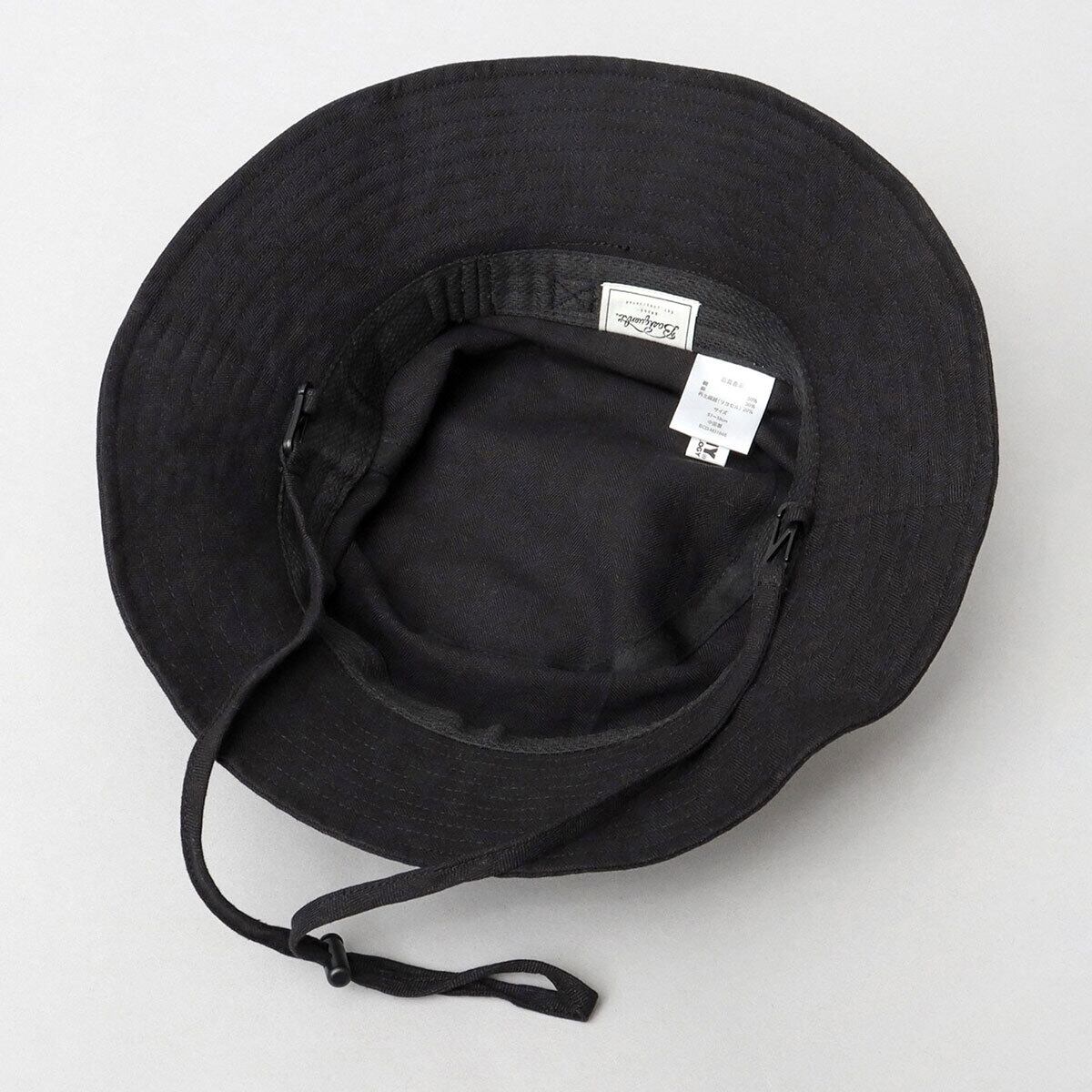風などで飛ばされないようにする顎紐付き。紐は長めなので、帽子を首から掛けることも可能。取り外しも可能なので、不要な時は顎紐なしでカジュアルにも使える。ストッパーでフィット感の調整も可能。
