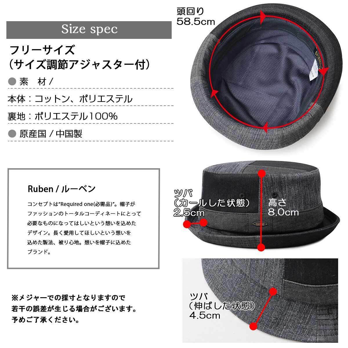 RBN-055 帽子 ポークパイ ハット メンズ ポークパイハット デニム バケットハット バケハ メンズ帽子 メンズハット シンプル カジュアル 2way ゴルフ black denim navy | A.M.S.