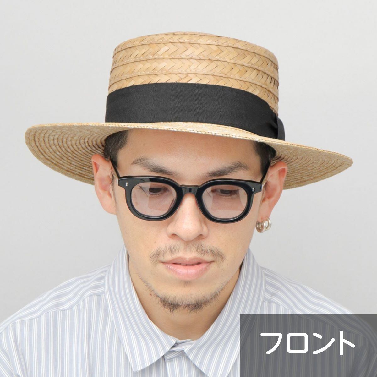 グログランリボンで締めた正統派スタイルのカンカン帽。別名、”ボーターハット”とも言われ、平らな円筒形のクラウンに、水平なブリムの直線的なシルエットが特徴。