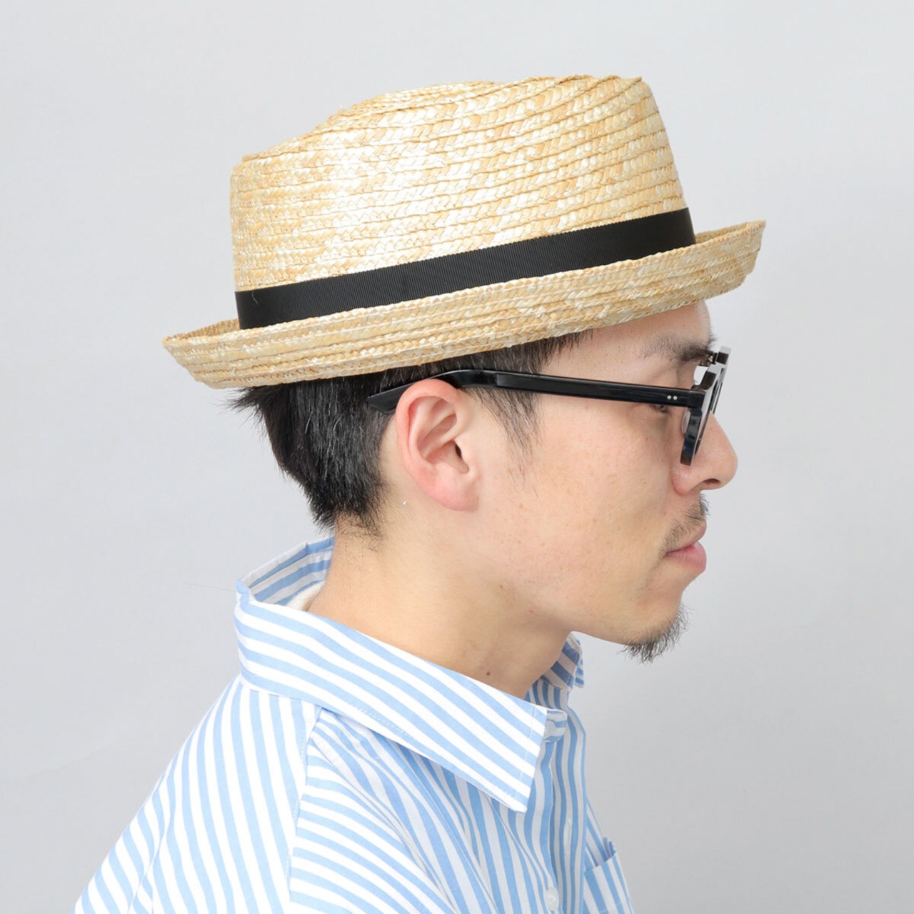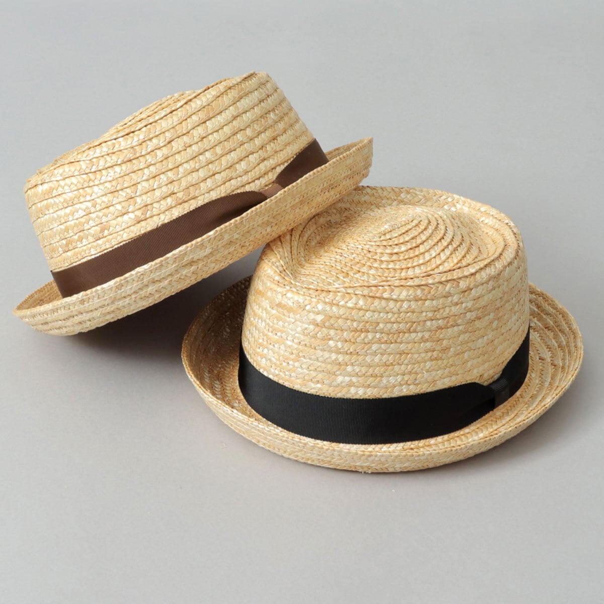 イギリスの料理「ポークパイ」に見た目が似ていることからつけられた名前のポークパイハット。トップが縁を残してぐるりと一周くぼんだ独特な形状のクラウンに、お皿の淵のように少し上向きとなったブリムを合わせたシルエットが特徴。涼しげな麦素材のボディに、高級感のある良質なグログランテープの配色デザインがオシャレポイント!通気性が良く、軽量な素材でありながらも、しっかりとした質感の上品な印象。消臭&抗菌効果に優れたデオドラントネームをスベリの内側に配置し、清潔に使用できるのもポイント◎オシャレに日除け出来るアイテムは、普段使いはもちろん、旅行時やバカンスなど、幅広いシーンに活躍してくれます。