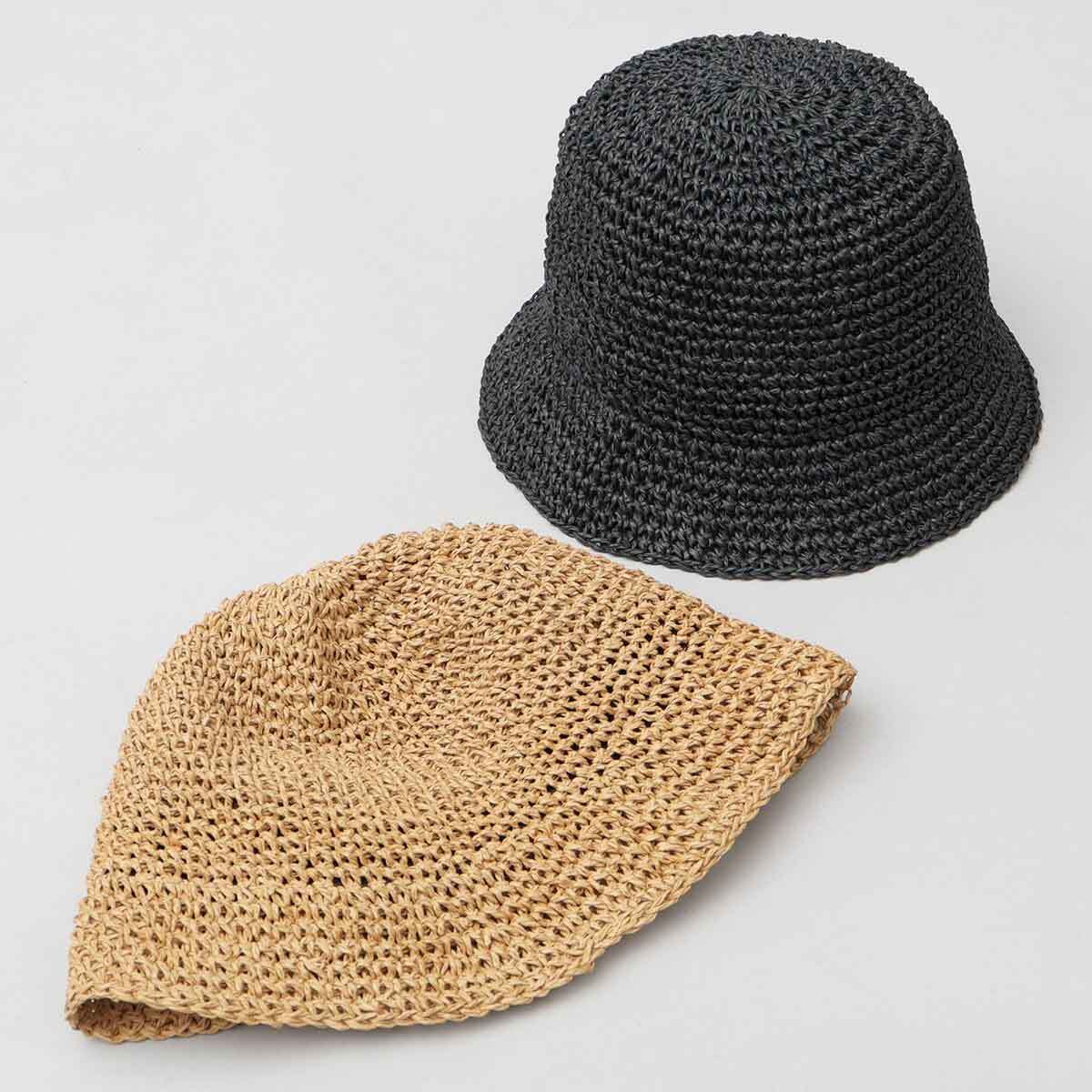 見た目も涼しげな、ざっくりとしたこま編みが魅力のバケットハット。軽量なペーパー素材を使用した、暑い時期にぴったりのアイテム。