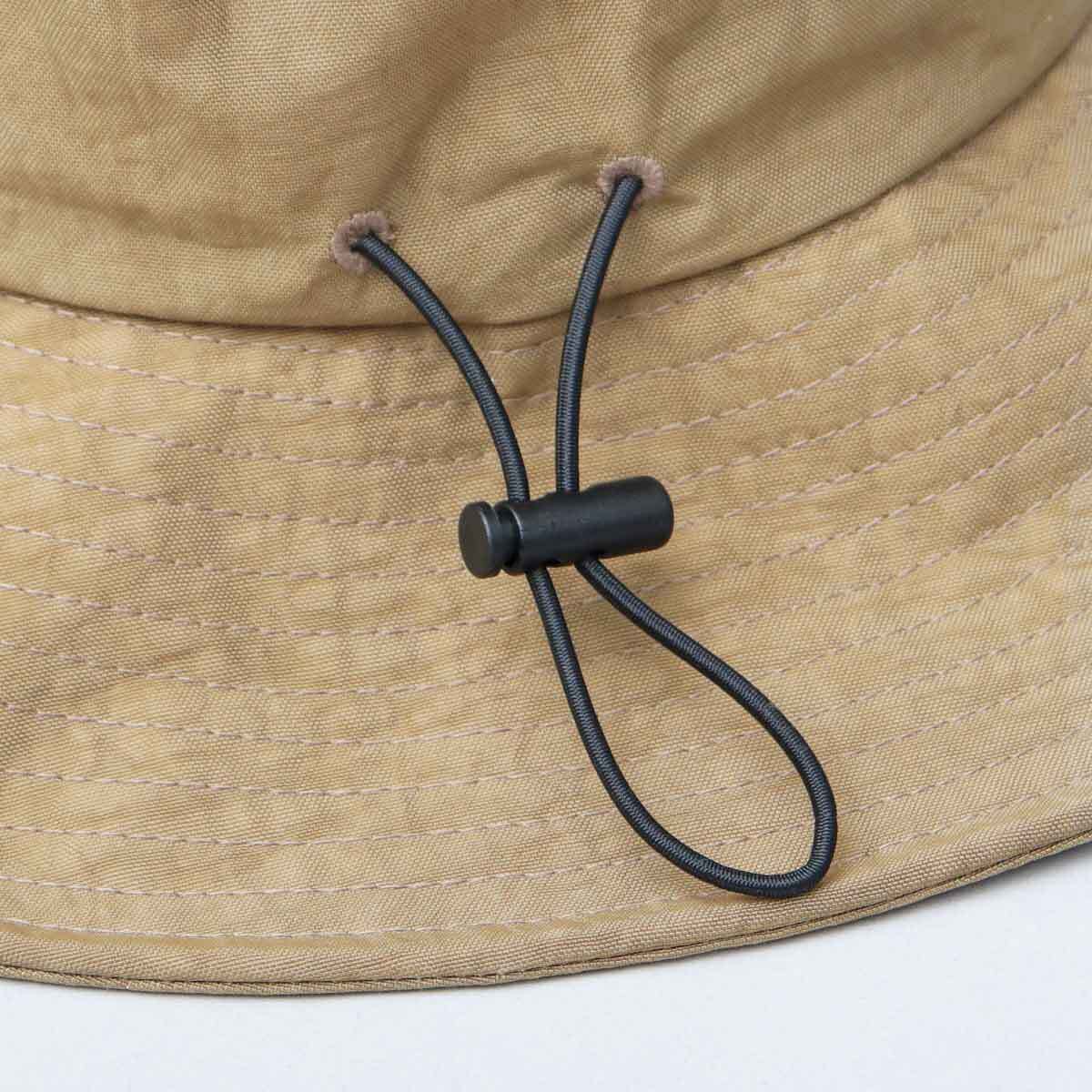 『高撥水・UVカット99.9%・UPF50+』の高機能アドベンチャーハット。ムラ染で仕上げた、立体感のある表情が魅力。日除けに適した360°の長めのツバ、お好みのサンシェールドを取り付けることが出来るループ、フィット感を調節できるあご紐など、アウトドアシーンにマストな機能性をしっかり完備◎ツバ先にはソフトワイヤー入りで、風でツバがめくれにくく、形状を保つことが可能。ハリがありながらも柔らかい作りなので、帽子を畳んで収納できるのも嬉しいポイント。アウトドア・レジャーシーンやスポーツなど、春夏のアクティブシーンにオススメ!