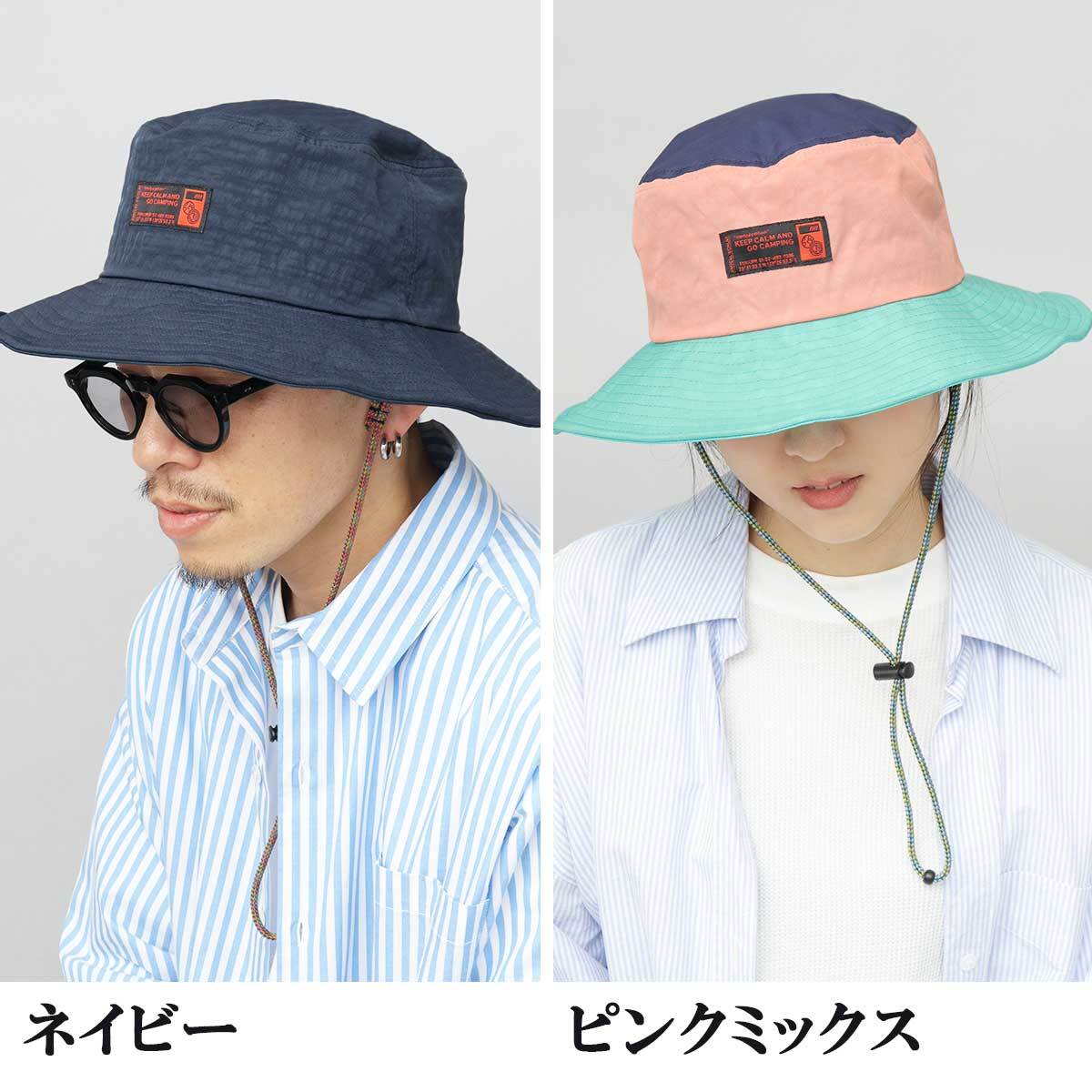 風などで飛ばされないようにする顎紐付き。ドローコードは長めなので、帽子を首から掛けることも可能。取り外しも可能なので、不要な時は顎紐なしでカジュアルにも使える。