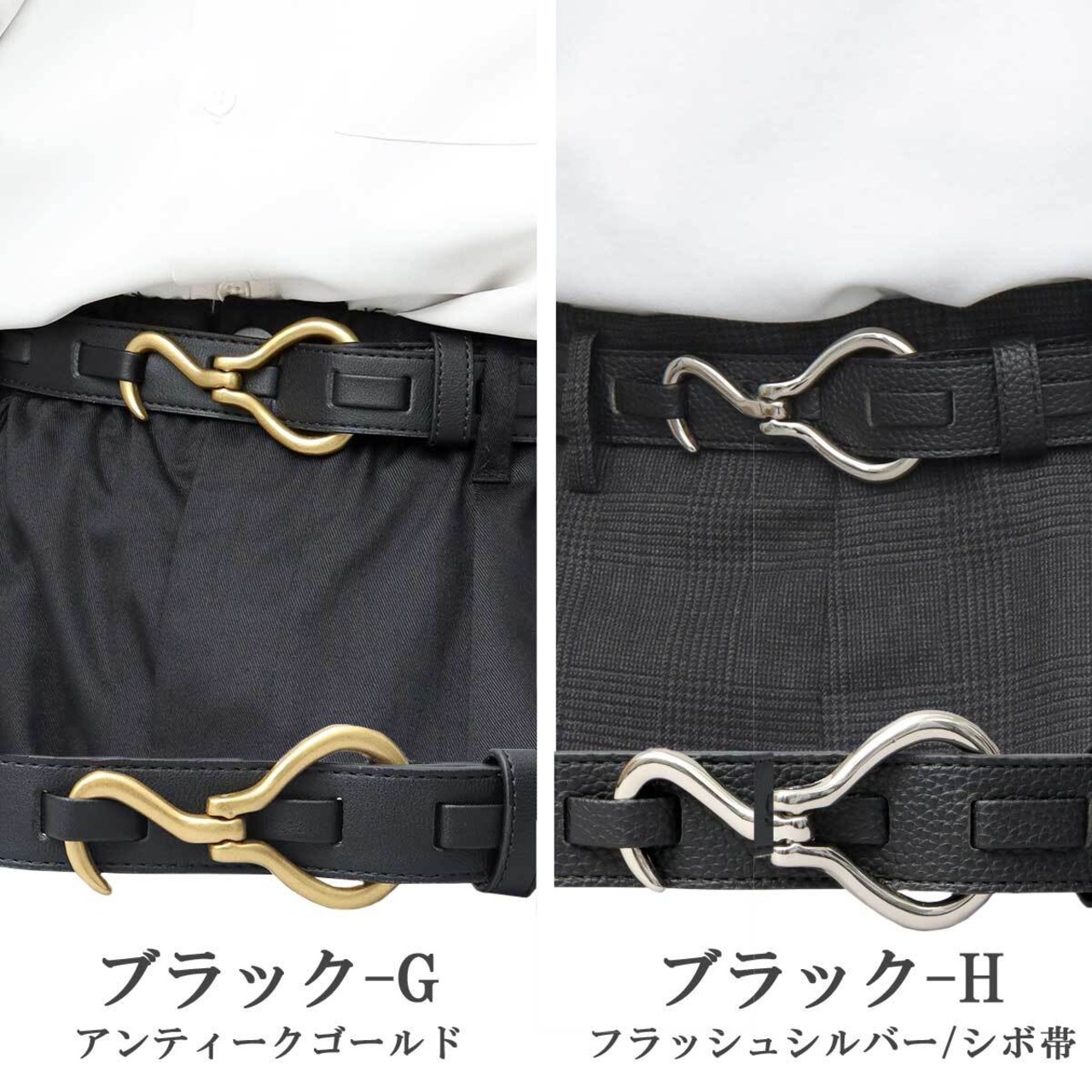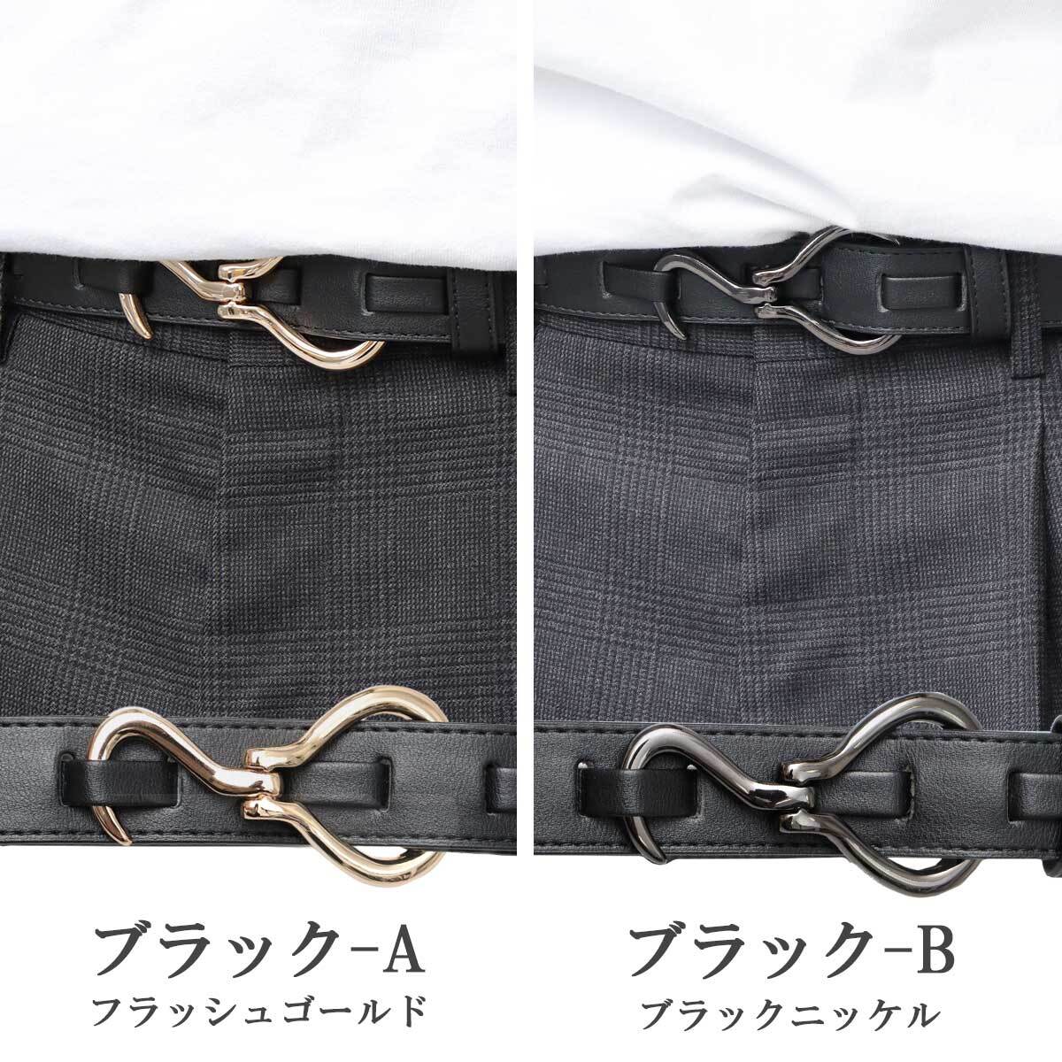 シルバーのフック型バックルが、タックインした際のアクセントにピッタリです。韓国系やモードなファッションにはもちろん、セットアップやスラックスなど大人なコーデや、デニムにTシャツを合わせたカジュアルコーデのアクセントにもおすすめです。価格もお手頃なので、プレゼント(ギフト)にもおすすめです!