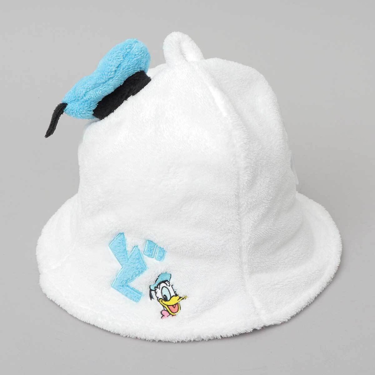 お気に入りのディズニーキャラクターになりきれちゃう、かわいい耳付きのデザイン(ドナルドは帽子付きのデザイン)。帽子サイド部分のキャラクターの刺繍デザインもポイント!