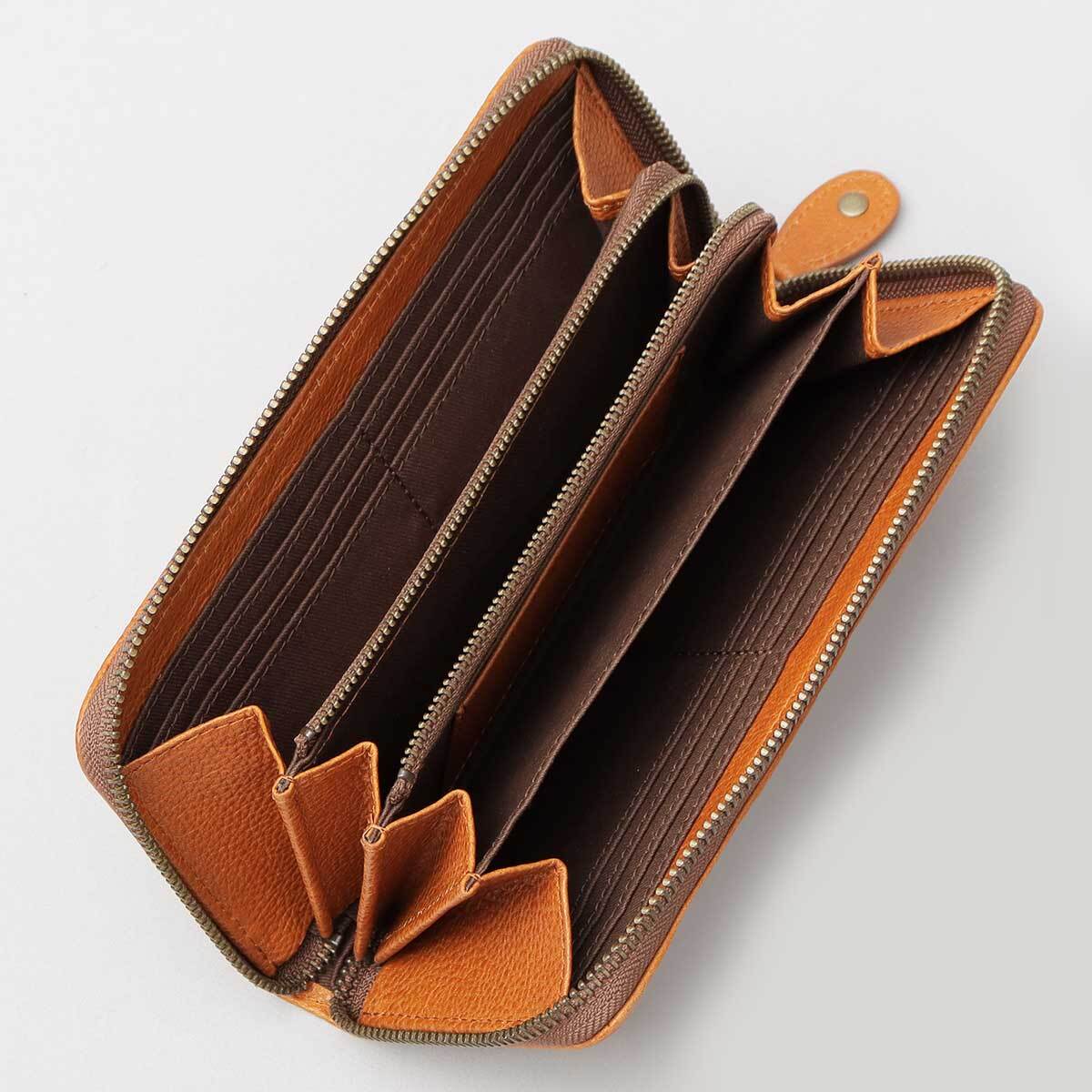 落ち着きのある上質な本革が持っていて気分が上がるアイテムです。ビジネスでもカジュアルでも使えるシンプルなデザインが魅力。充実のカードポケットや札入れなど、容量面も抜群。どうしても多くなってしまうカードや小銭、レシートや領収書が綺麗に収納できるのが嬉しいです。間口が広く開くラウンドジップ仕様は、中身が見やすくて使い勝手抜群◎母の日のプレゼントにもおすすめです。