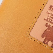 2色の異なるレザーを使用した、2トーン・バイカラーシリーズ 『- square -』の二つ折り財布。ブランドアイコンのエルク(ヘラジカ)が窓からのぞいているような、遊び心のある刻印がポイント。