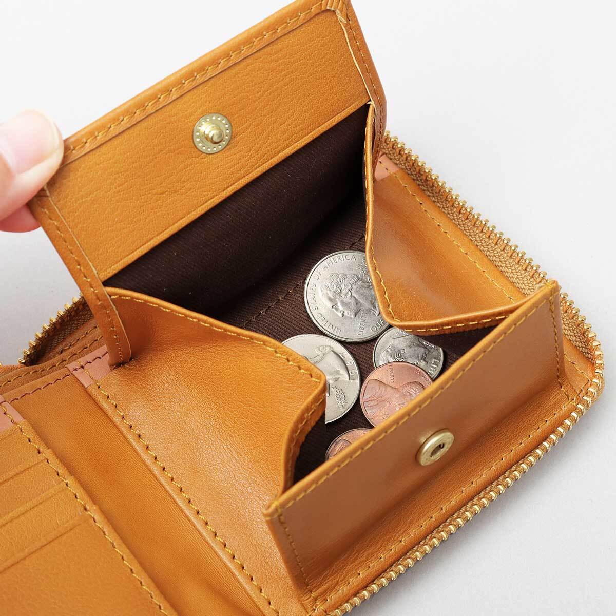 内部は、カードポケット×7、お札を入れられるロングポケット×2、パカっと開く小銭ポケット×1を完備。小銭ポケットは、立体構造で中が見渡しやすく、出し入れがしやすい仕様。