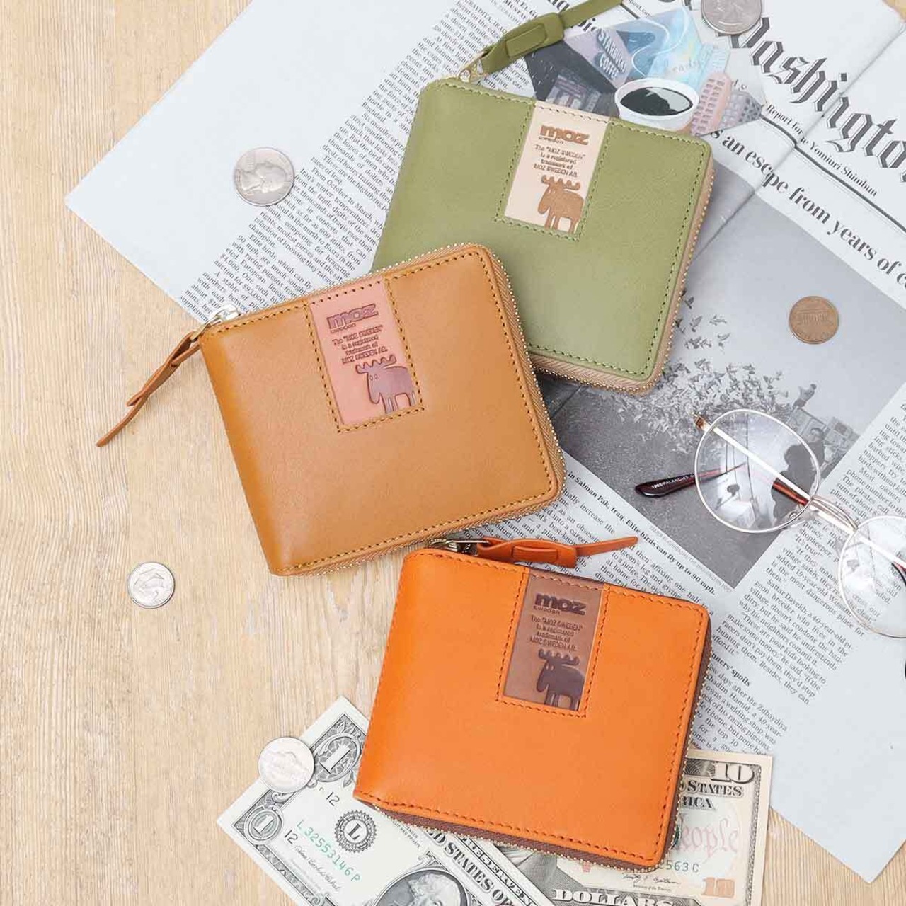 TTO-097 moz モズ 財布 お財布 レディース 二つ折り財布 ウォレット レザーウォレット 本革 リアルレザー 高級感 シンプル 無地 きれいめ カジュアル ファスナー コンパクト | A.M.S.