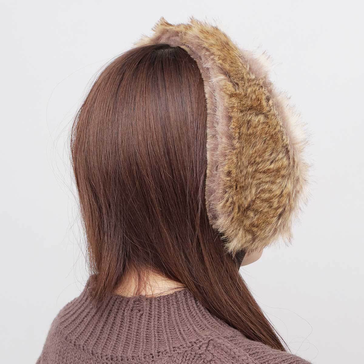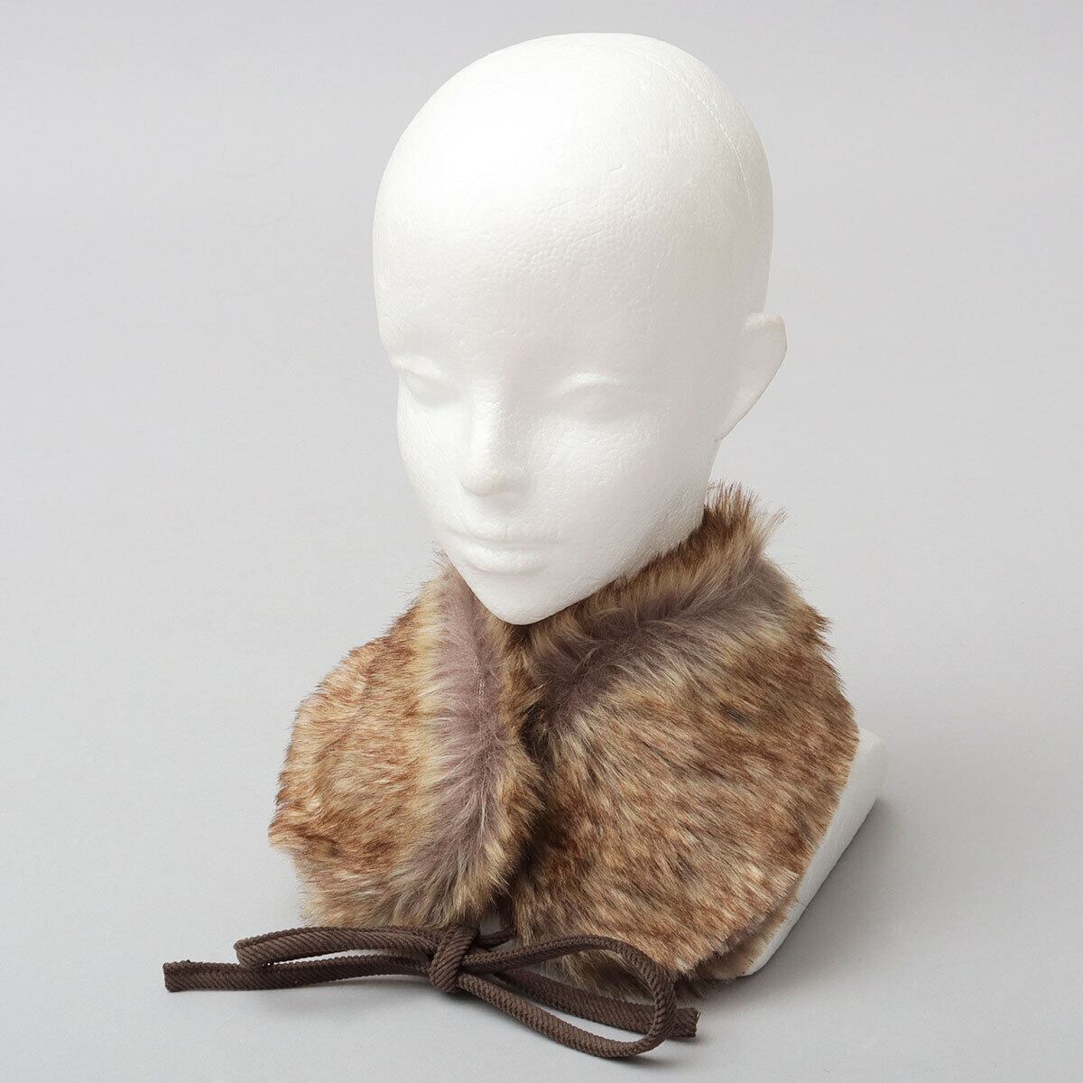 HDT-174 ミックスファーボンネット レディース 2WAY ファー ボンネット アクセサリー ヘッドバンド 付け襟 マフラー 耳当て 秋冬 ブラウン 茶 暖かい 防寒 おしゃれ