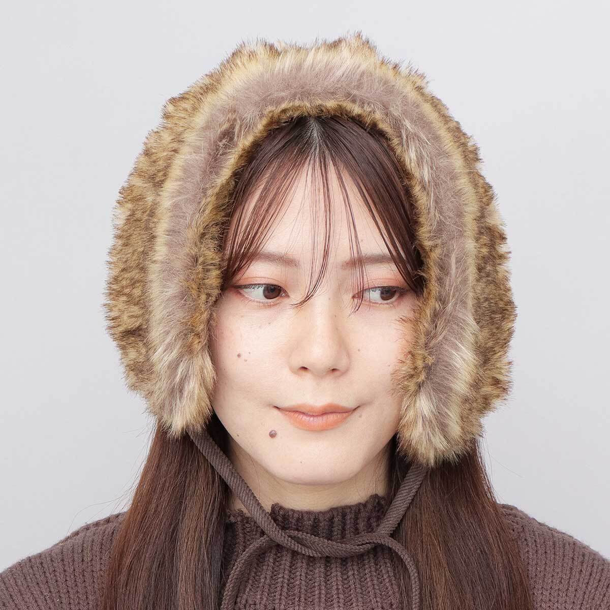 毛足の長いミックスファーを使用した、ボリューム感のあるシルエットが魅力のボンネット。ファッションのテイストを問わず使える、万能アイテム。